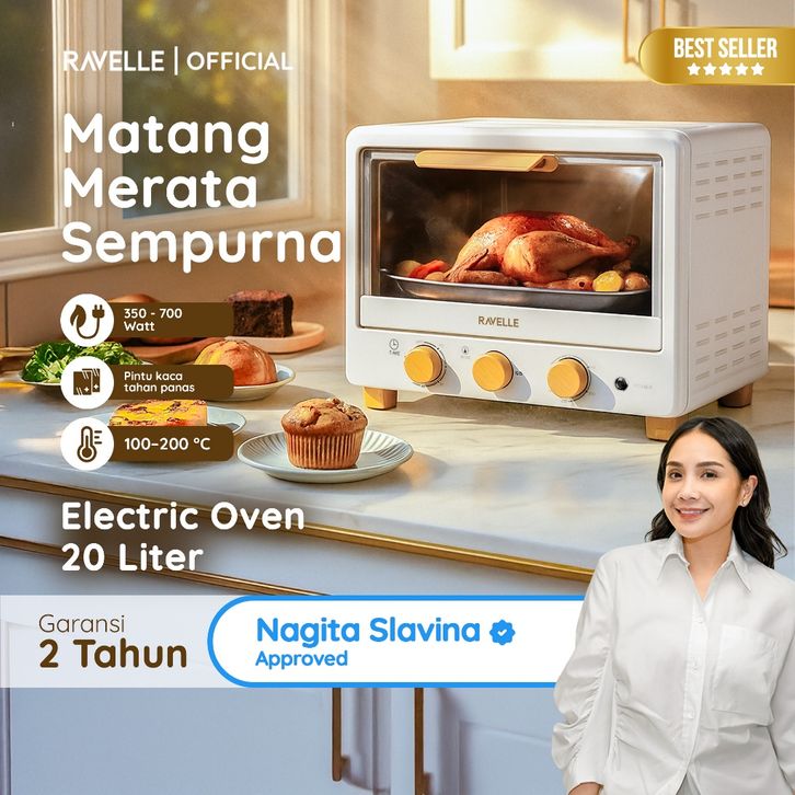 RAVELLE Electric Oven 20 Liter - Oven Listrik Low Watt - Cotton White