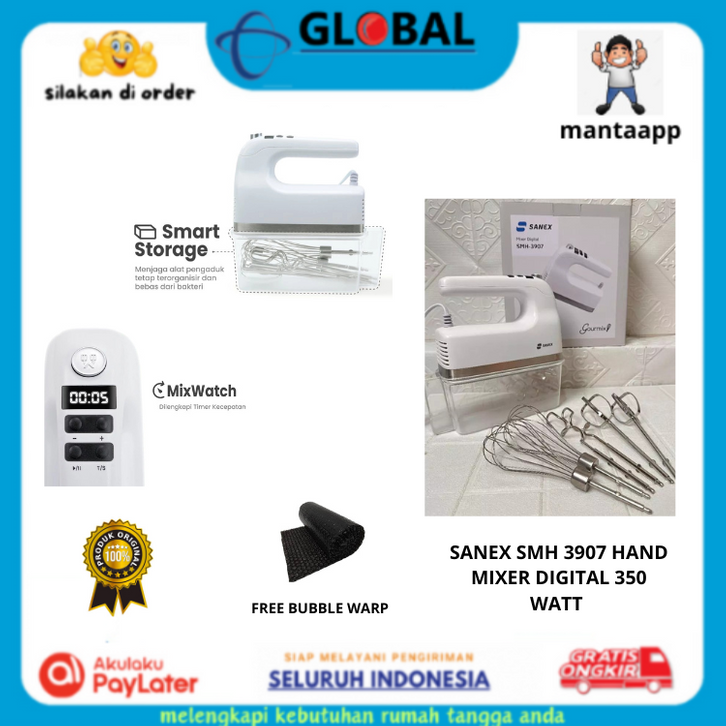 SANEX SMH-3907 Hand Mixer Digital 350 Watt / Produk Terbaru / Kwalitas Ok / Jamin Awet