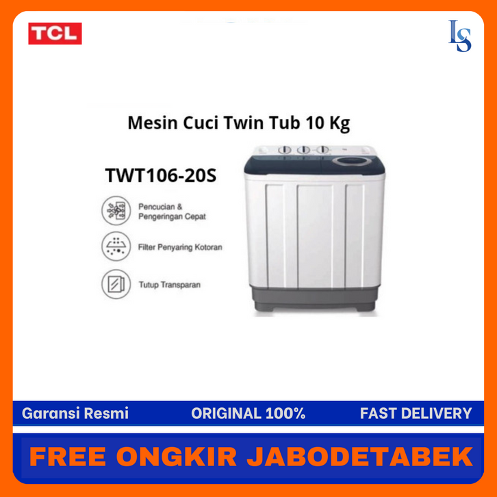 FREE ONGKIR JABODETABEK TCL MESIN CUCI 10KG TWIN TUB - TWT106-20S Garansi Resmi