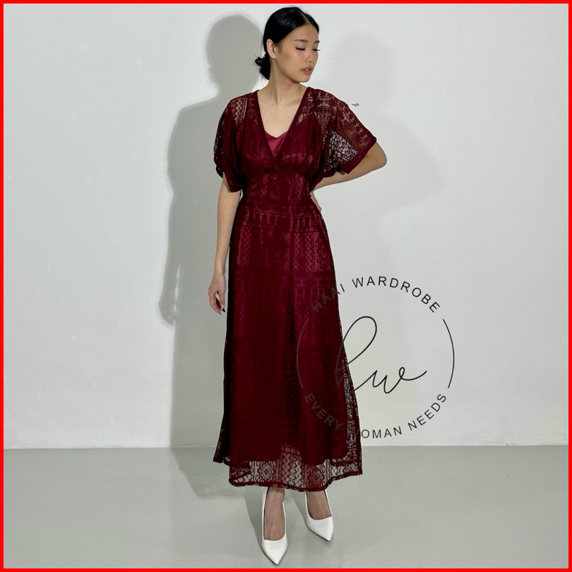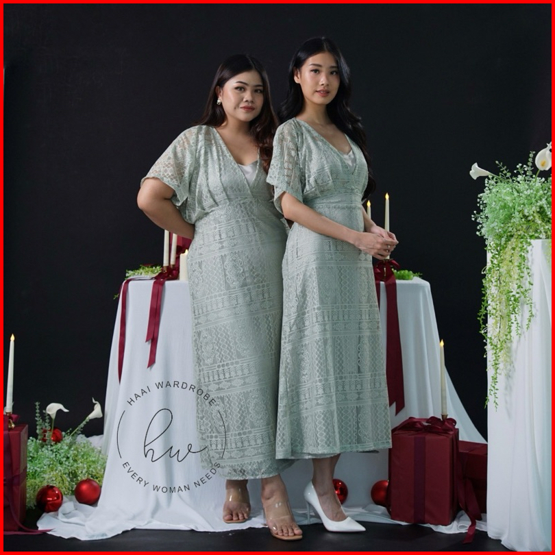 Hw - Calista Set - 1730 - Dress Satin Brukat 2in1 Gaun Formal Pesta Kondangan
