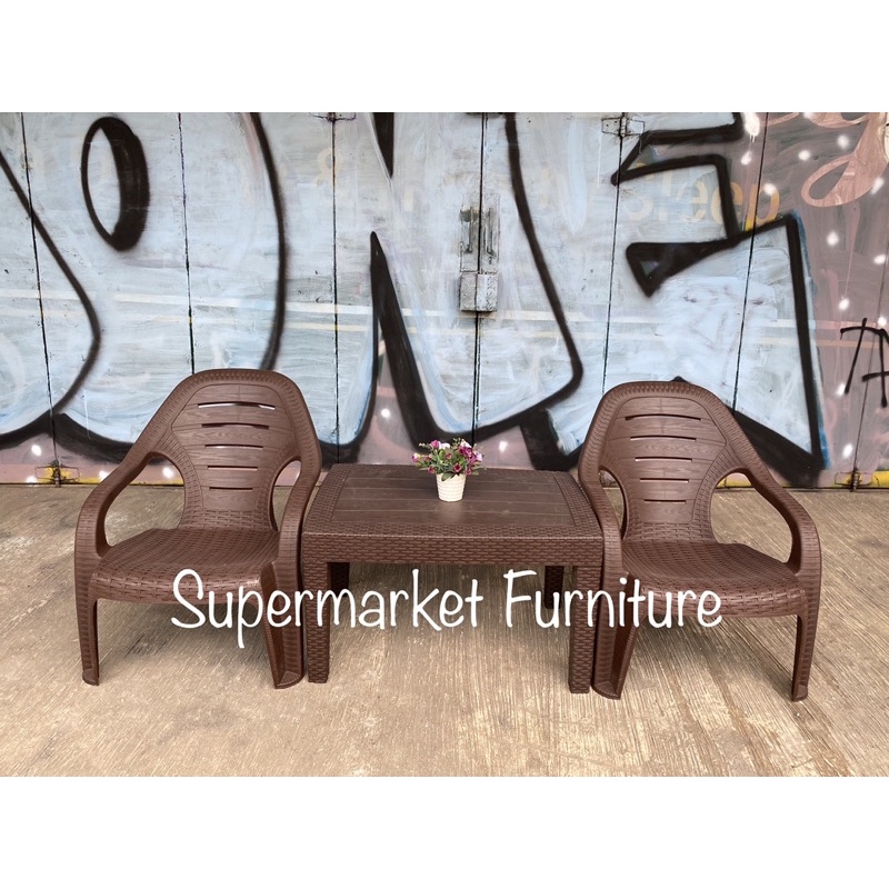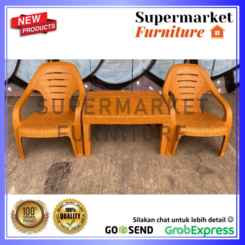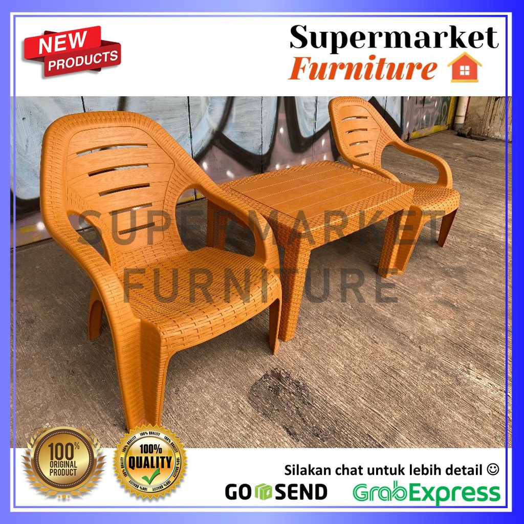 GRATIS ONGKIR Kursi Santai Plastik OL 509 Rotan + Meja OST Panjang Kursi Teras Plastik Kursi Taman Kursi Plastik Set