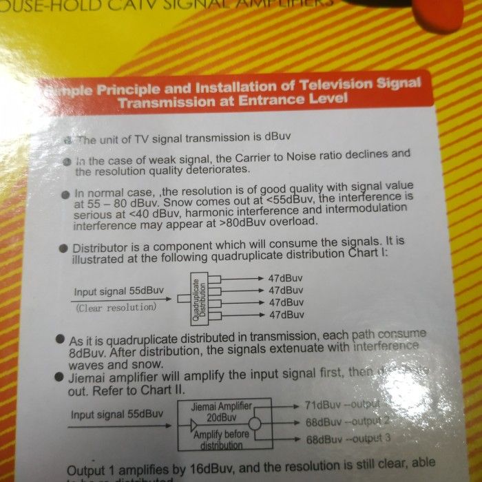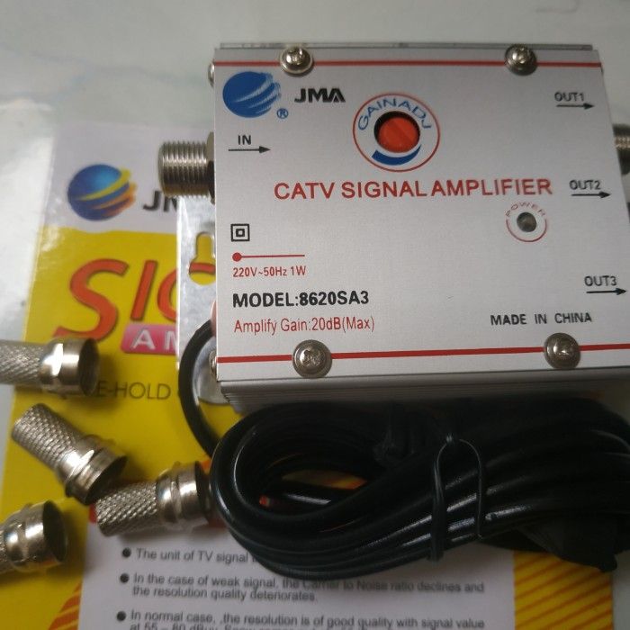 Booster 3 tv Catv Signal Amplifier 3 way Plus konektor Pararel 3 TV