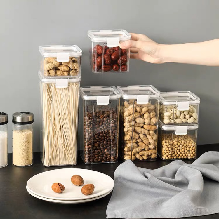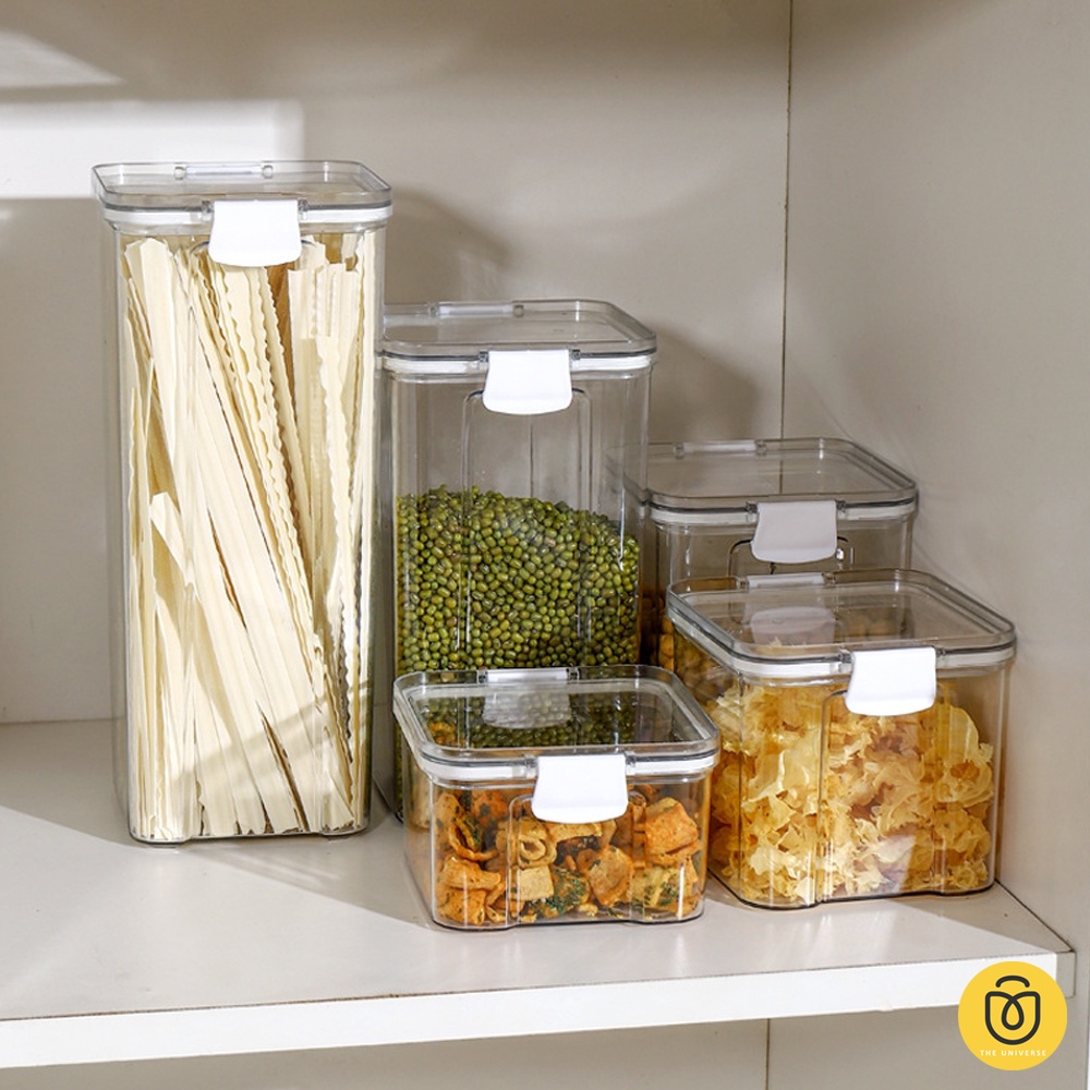 Toples Kotak Bening Plastik Penyimpanan Makanan Kedap Udara Snack Cereal Kue Kering Nastar Food Storage Jar Container -