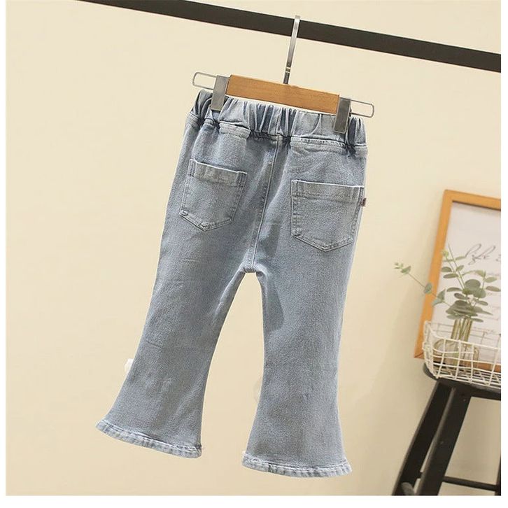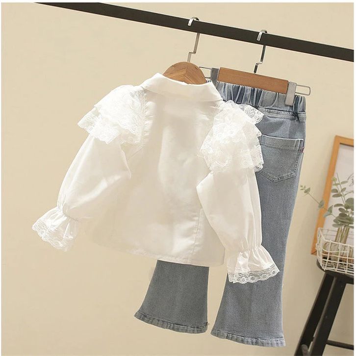 363605 Setelan Blouse Celana Panjang Jeans Cutbray Anak Perempuan Motif Shoulder Lace