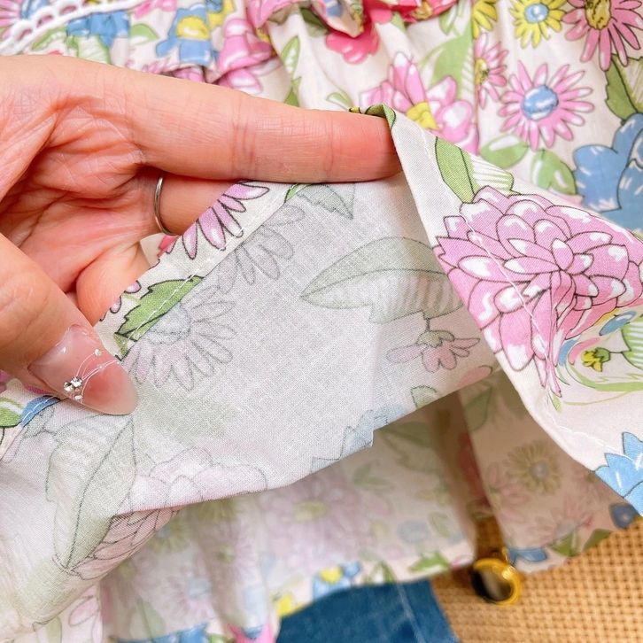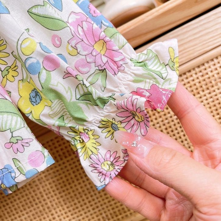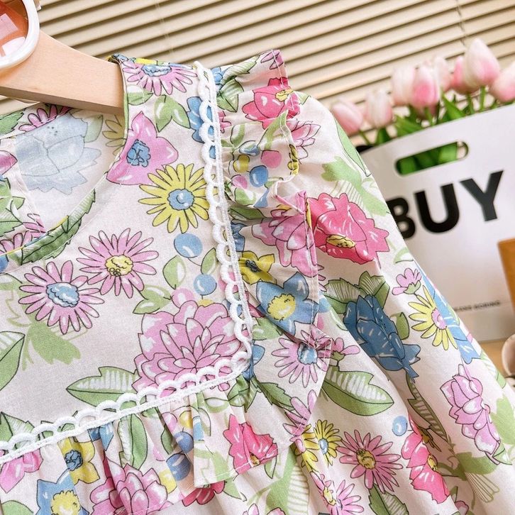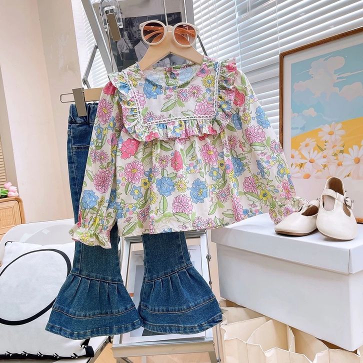 363788 One Set Baju Blouse Lengan Panjang Celana Cut Bray Jeans Panjang Fashion Anak Perempuan Motif Colorful Flower