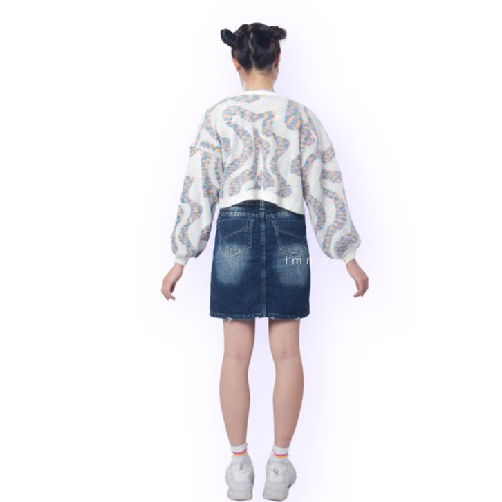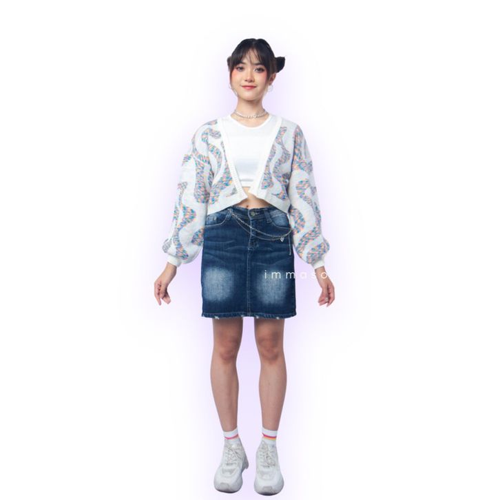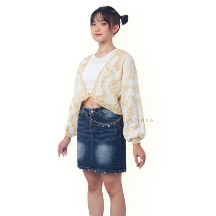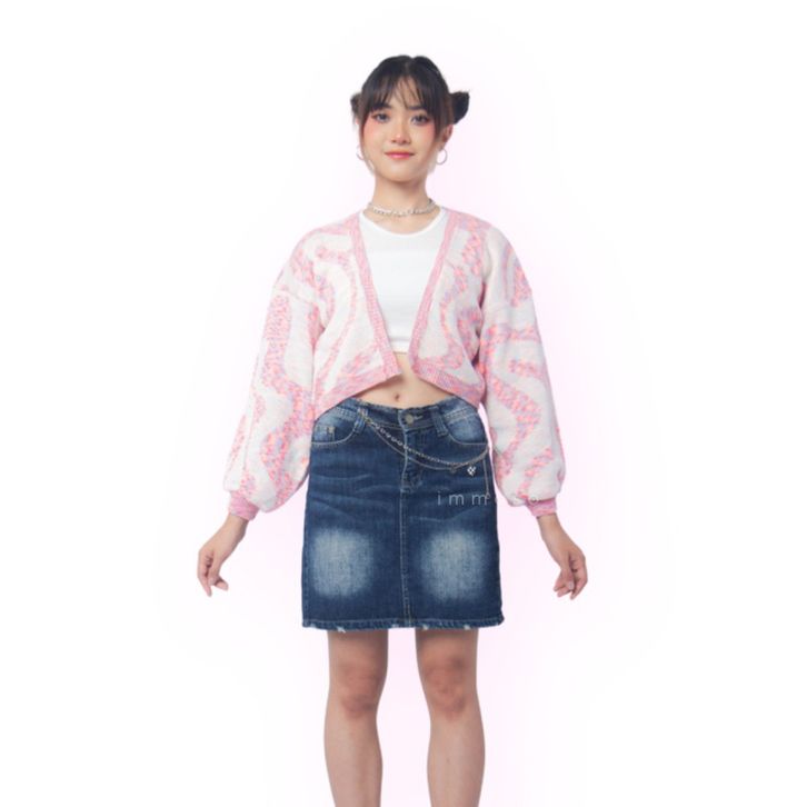 Cardigan Wanita Korean Style Rajut Areum Candy Rainbow Cardigan Crop Top
