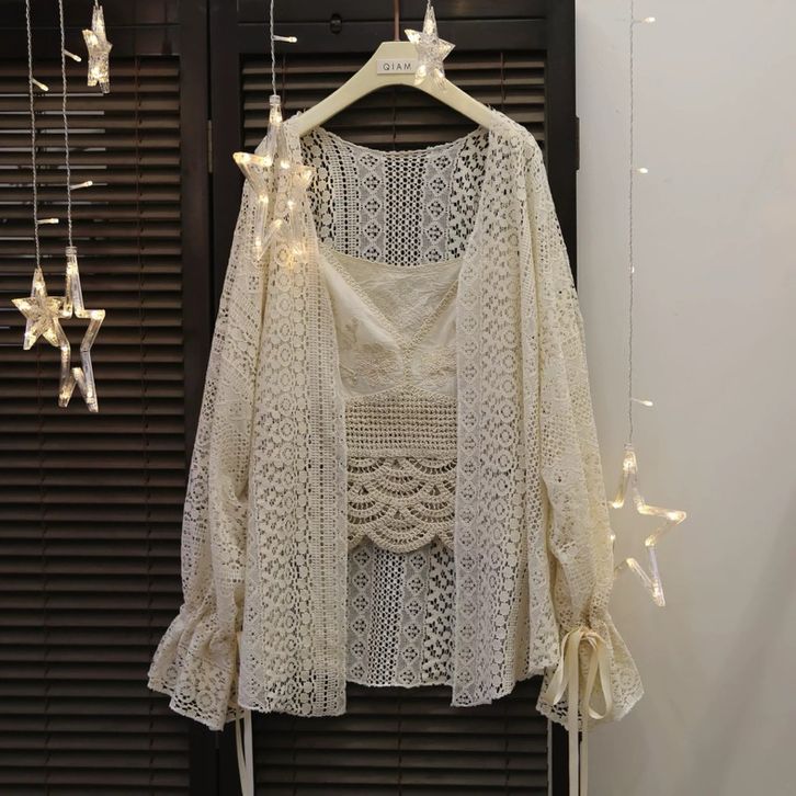 Cardigan Wanita Korean Style Rajut Aghnia Lace Outer Cardigan Import Korean Bohemian Kardigan