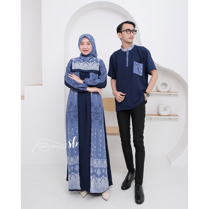 Gamis Lebaran 2025 Set Couple Gamis Citra dan Kemeja Gazi Cringkle Mix Ceruty Motif Baju Muslim Pasangan Couple Dress