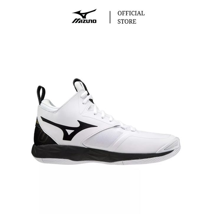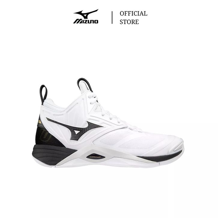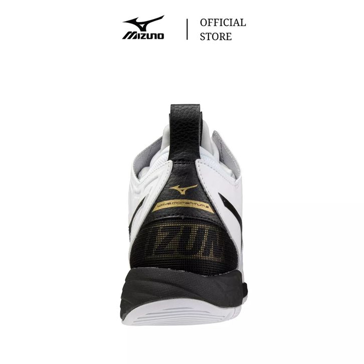 MIZUNO SEPATU VOLLEY WAVE MOMENTUM 2 MID WHITE BLACK GOLD MIZV1GA211709