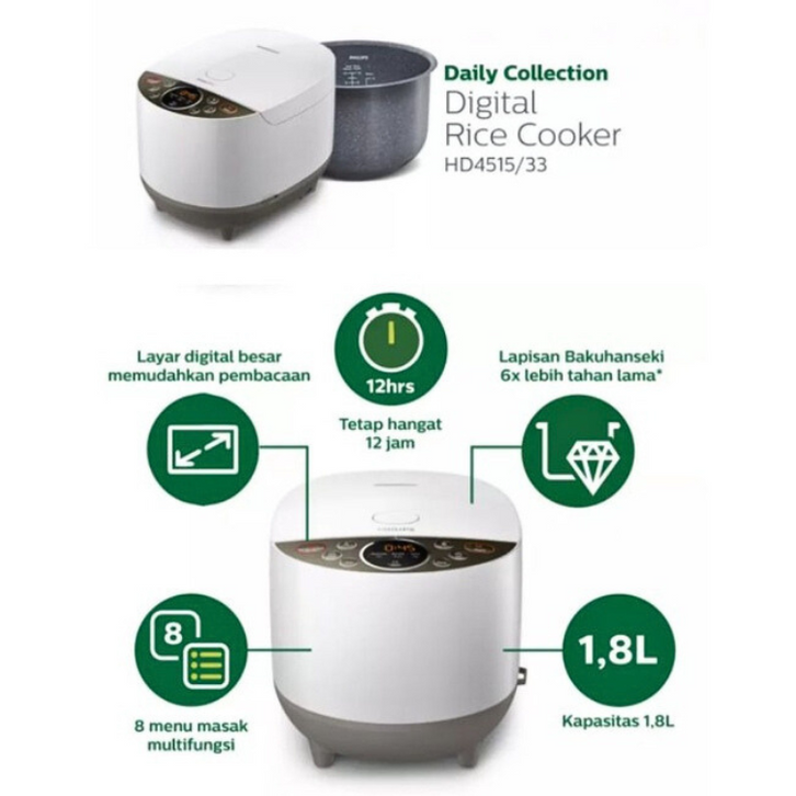 PHILIPS RICE COOKER HD4515 / HD3003 DIGITAL 1.8L PENANAK NASI HD 4515 - MAGIC COM DIGITAL 10 MENU