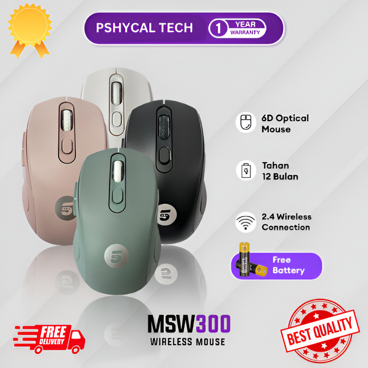 Mouse Wireless Silent Click Optical 1600DPI dengan USB Receiver PC Laptop