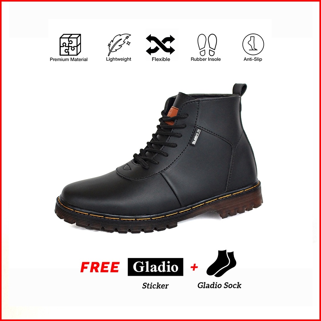 Gladio Footwear - Sepatu Boot Pria Docmart Pria Sepatu Boots Kulit Asli Formal Original Gladio Omega Hitam