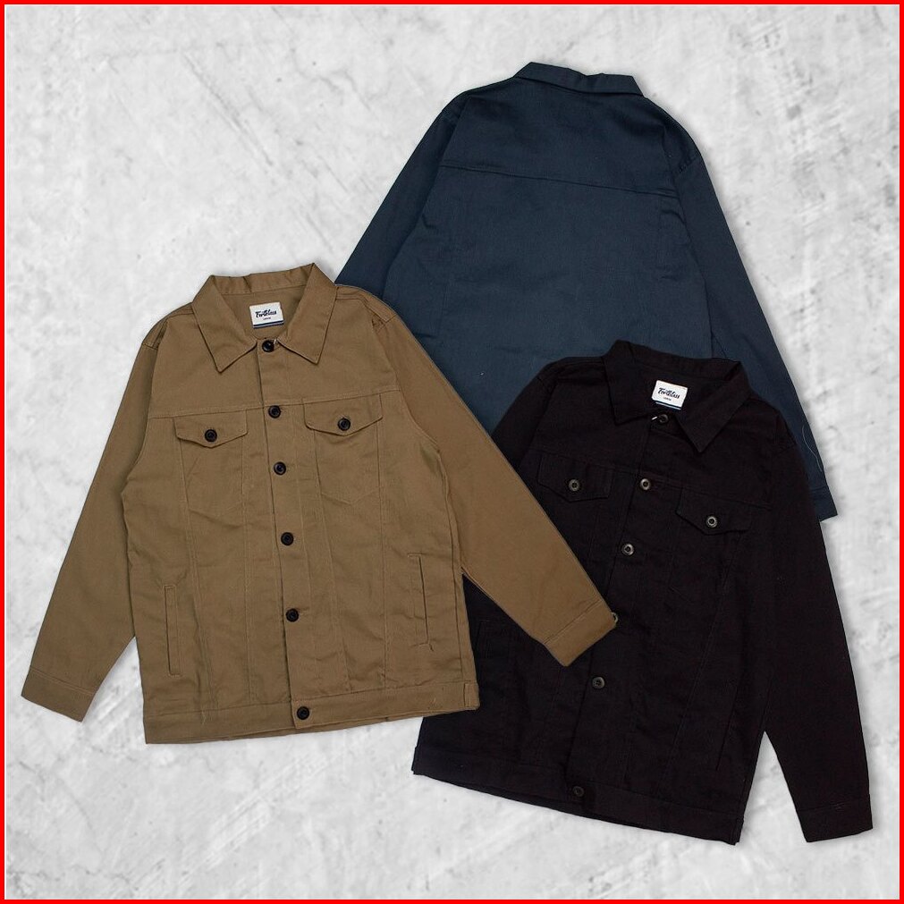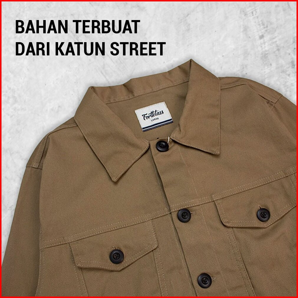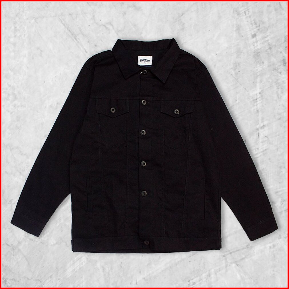 Fortklass Jaket Arthur Trucker Canvas Parka Pria Kancing Hitam Canvas Man Best Seller