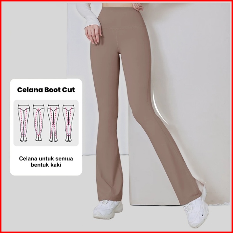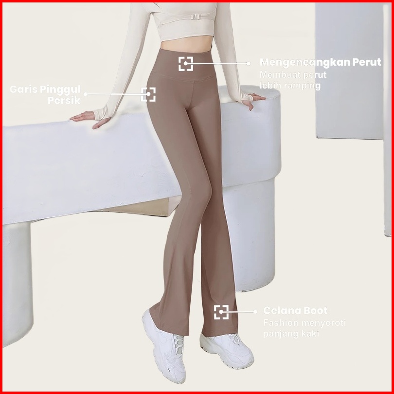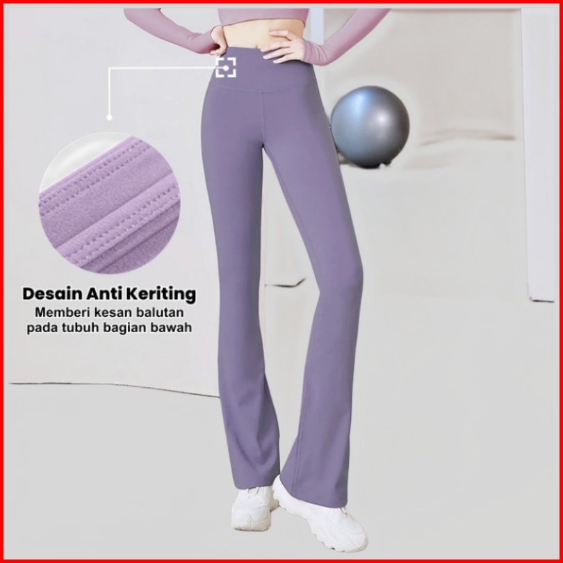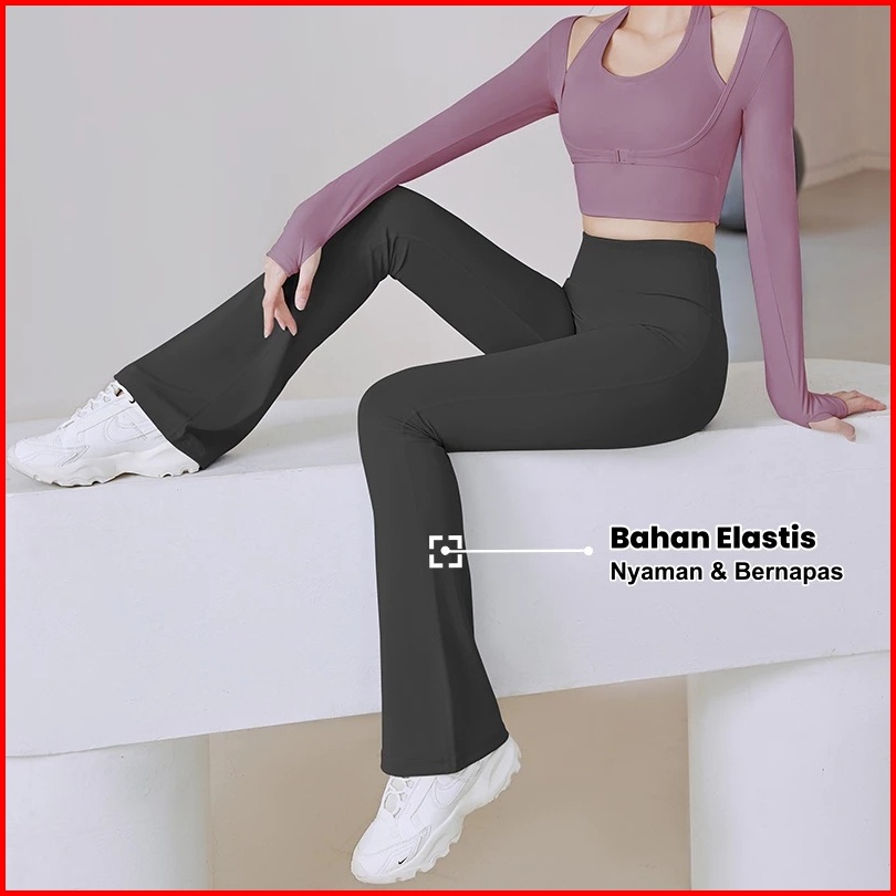 Legging Flared Sport Celana Yoga Celana Cutbray Wanita Basic Wide High Waist Pants