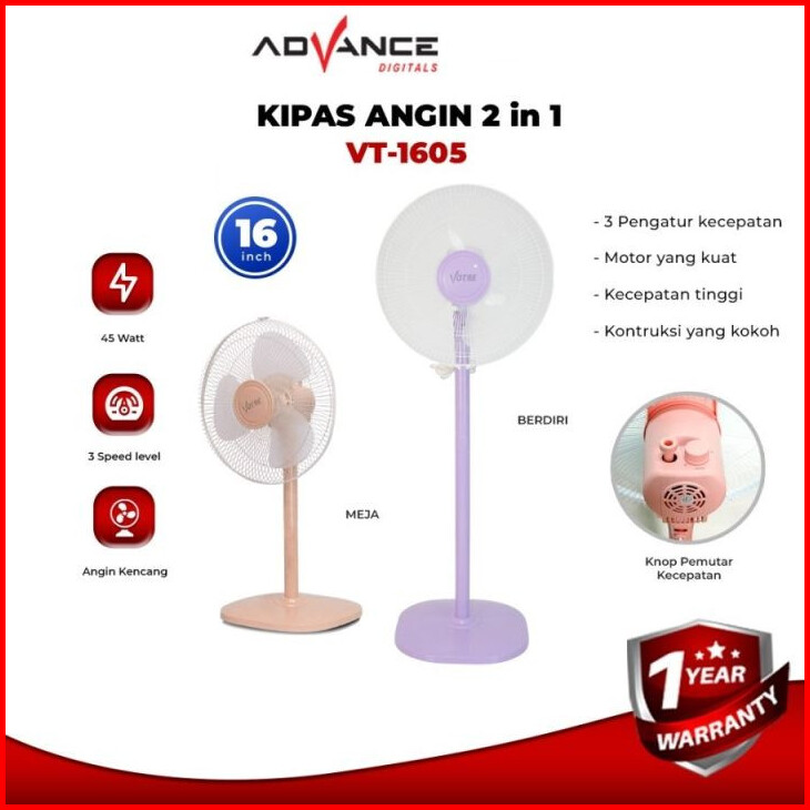 Kipas Angin Berdiri Advance Stand Fan Vt1605 Votre 16 Inch