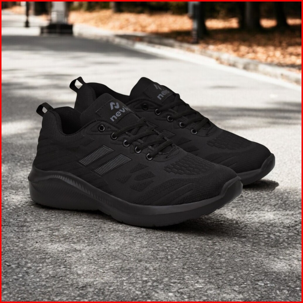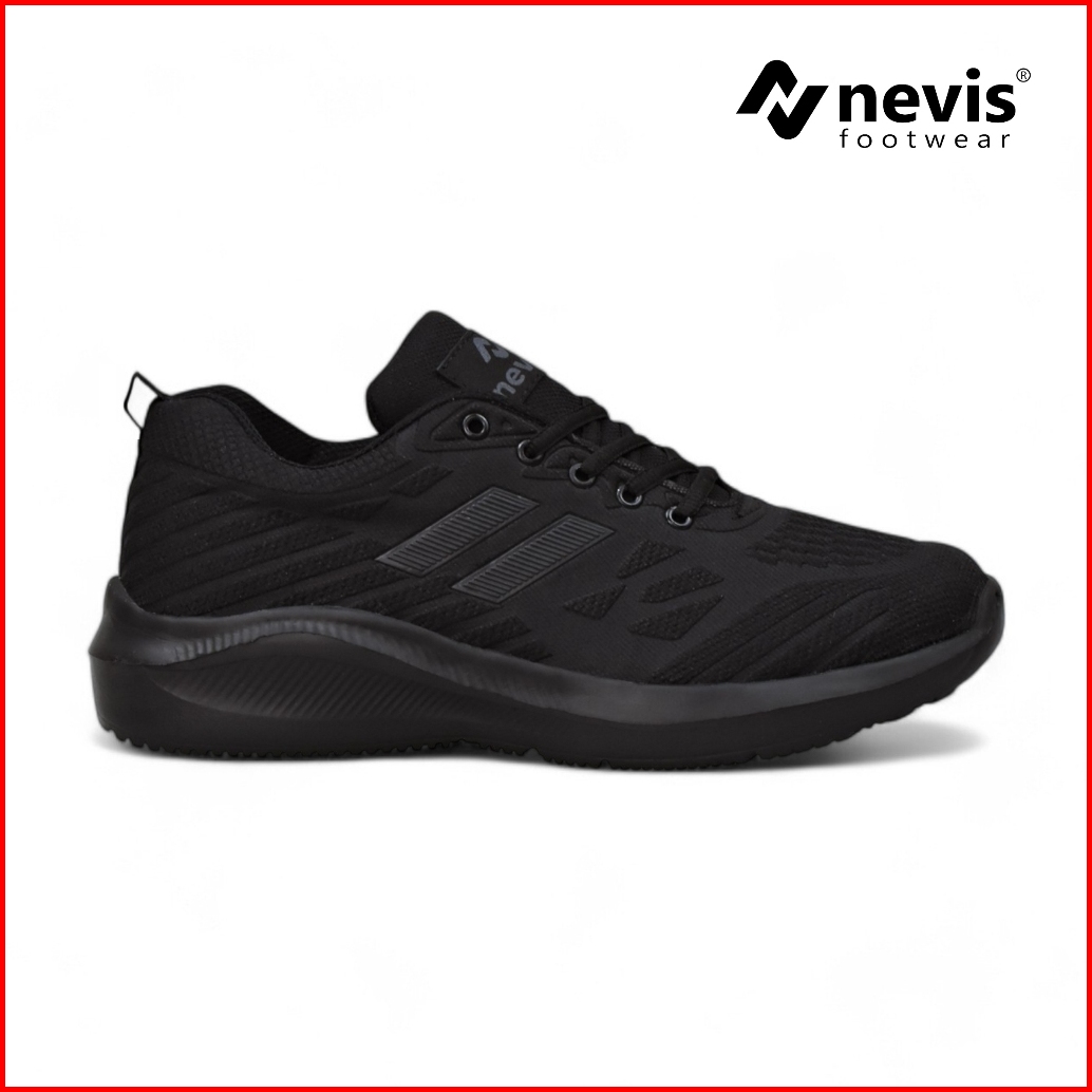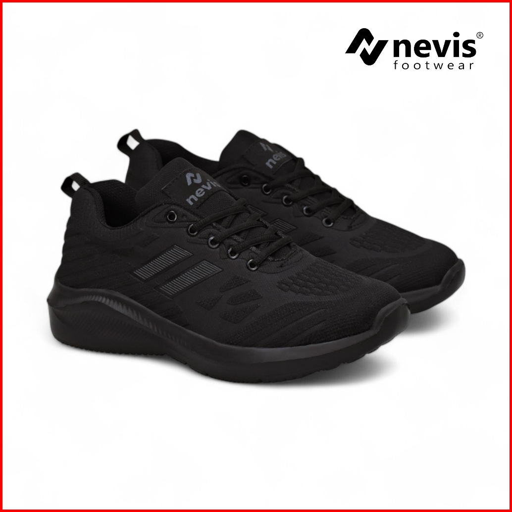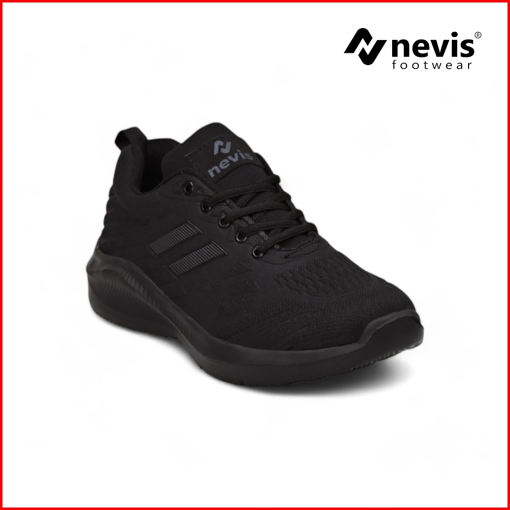 Sepatu Pria Jumbo Big Size 39-49 Nevis Hugo Full Black Hitam Polos Sport Running Sekolah Kerja Cowok