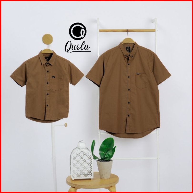 Qurlu - Kemeja Kerah Formal Dewasa Anak Warna Coklat Mocca Bisa Couple Ayah Dan Anak