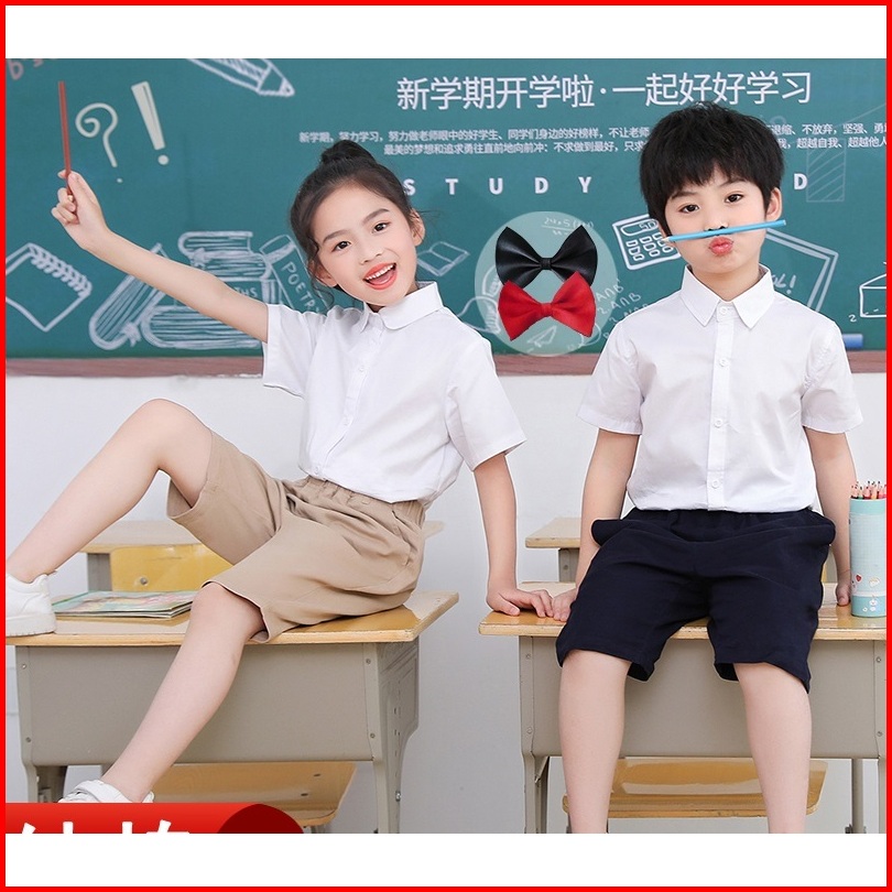 Kemeja Anak Laki Laki Perempuan Lengan Pendek Putih Biru Umur 0-12 Tahun Nonk