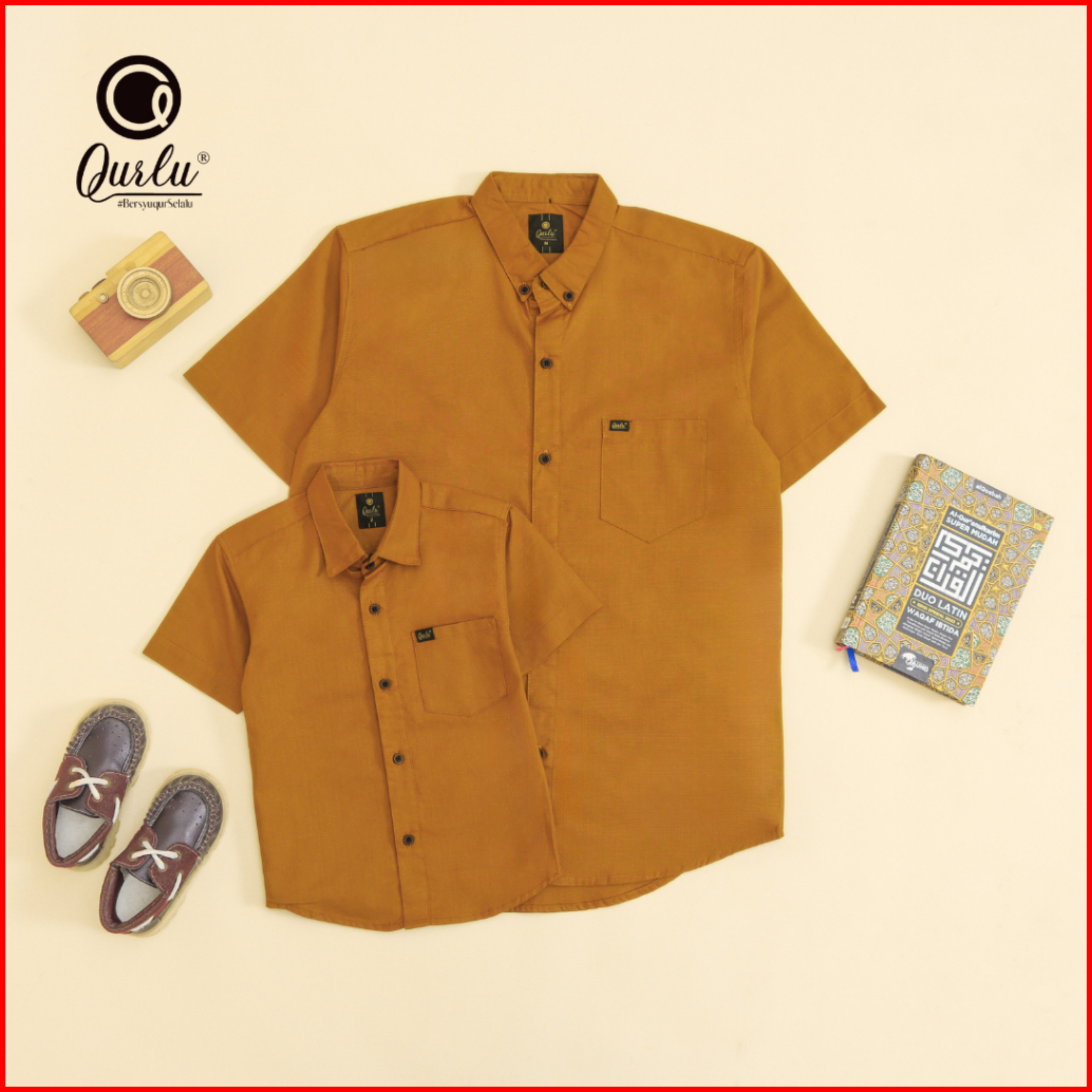 Qurlu - Kemeja Kerah Formal Dewasa Anak Warna Golden Brown Bisa Couple Ayah Dan Anak