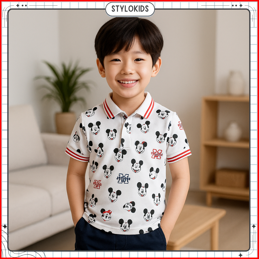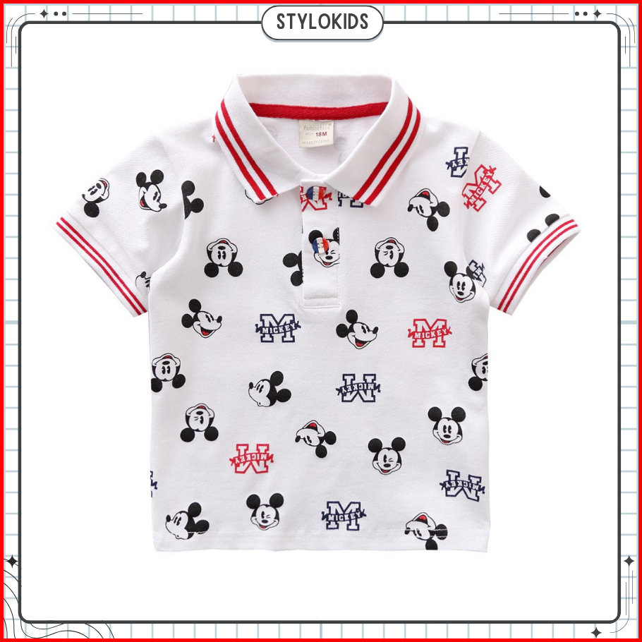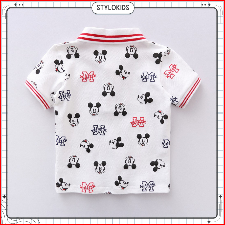 Stylokids Baju Kaos Polo T-shirt Anak Laki-laki Gambar Mickey Mouse Warna Putih
