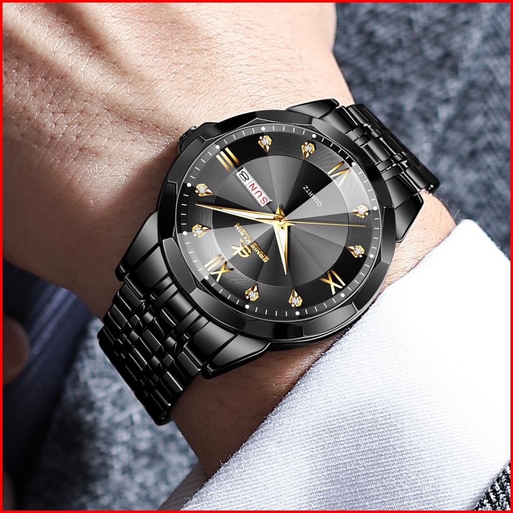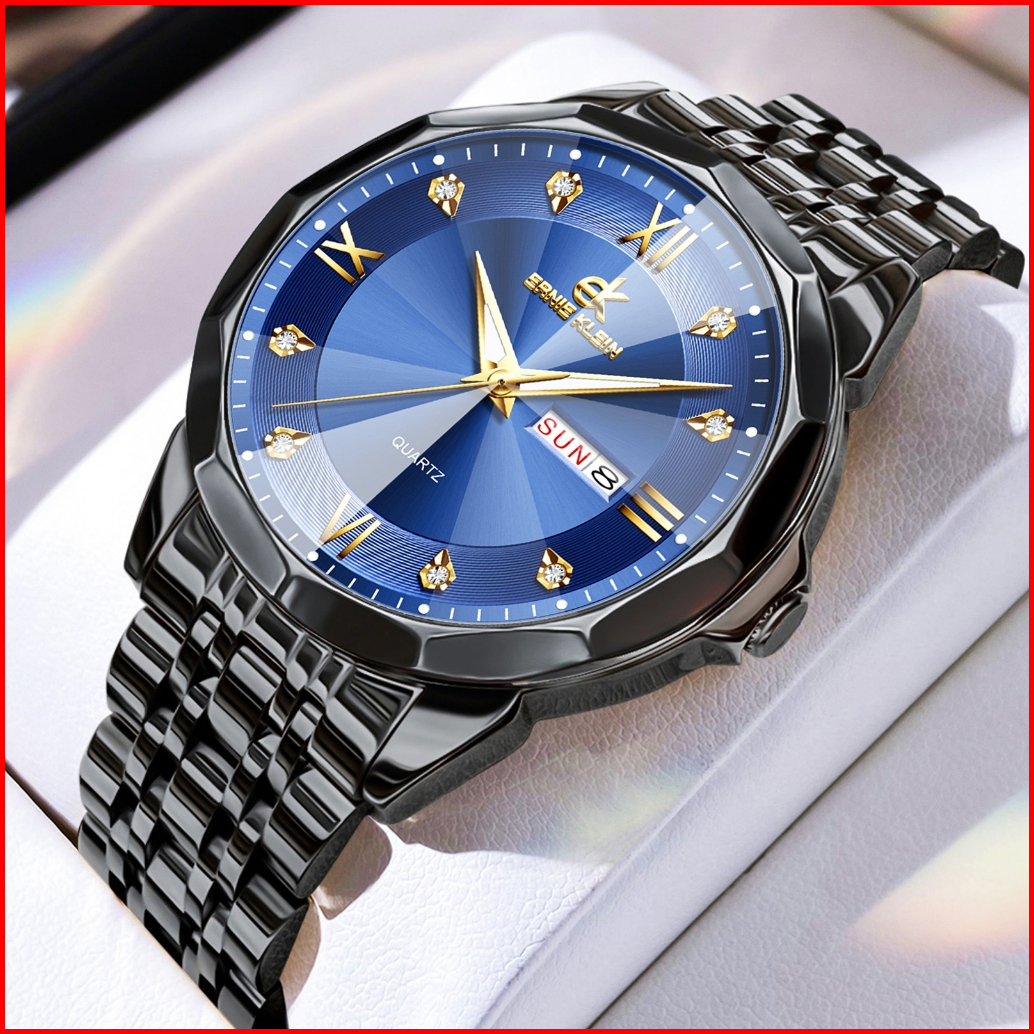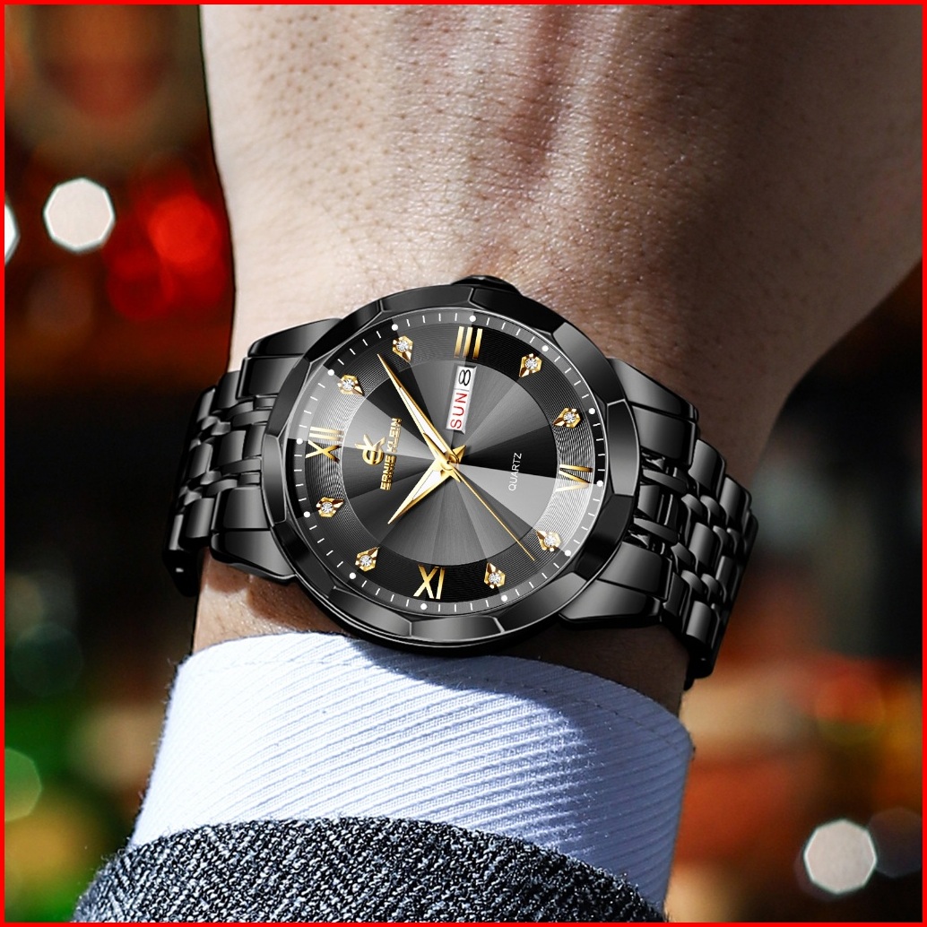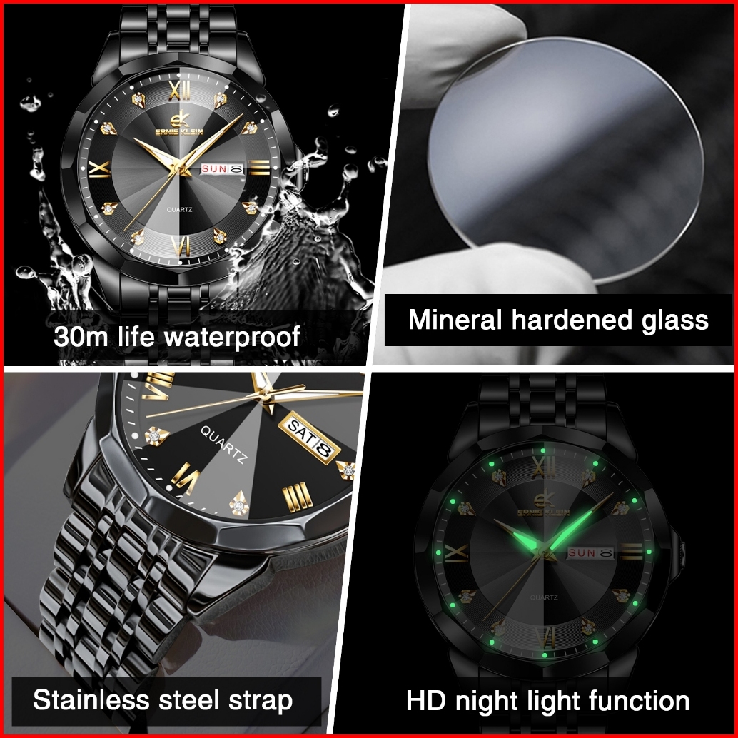 Ek Mewah Jam Tangan Pria Anti Air Original Terbaru 2024import Elegan Stainless Steel Prismatik Berlian Dial Jam Tangan H
