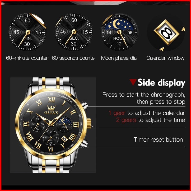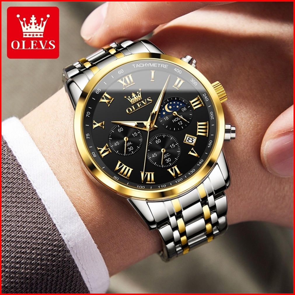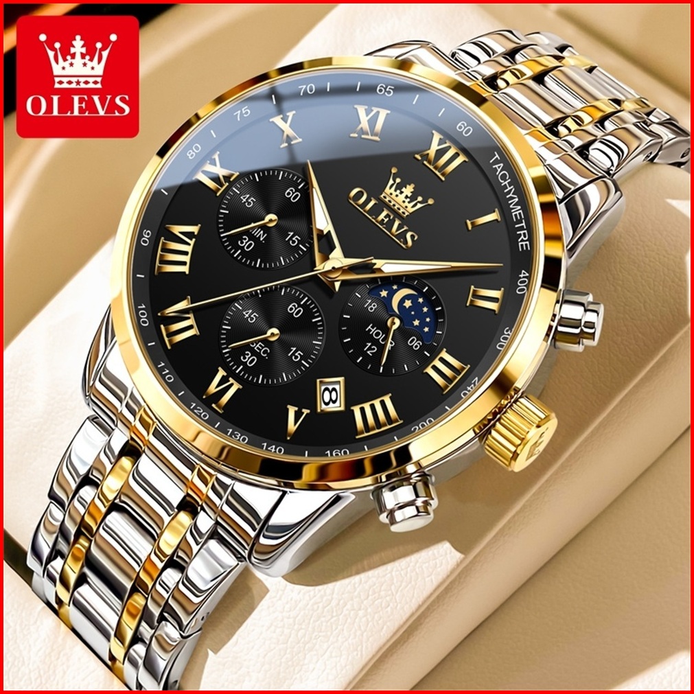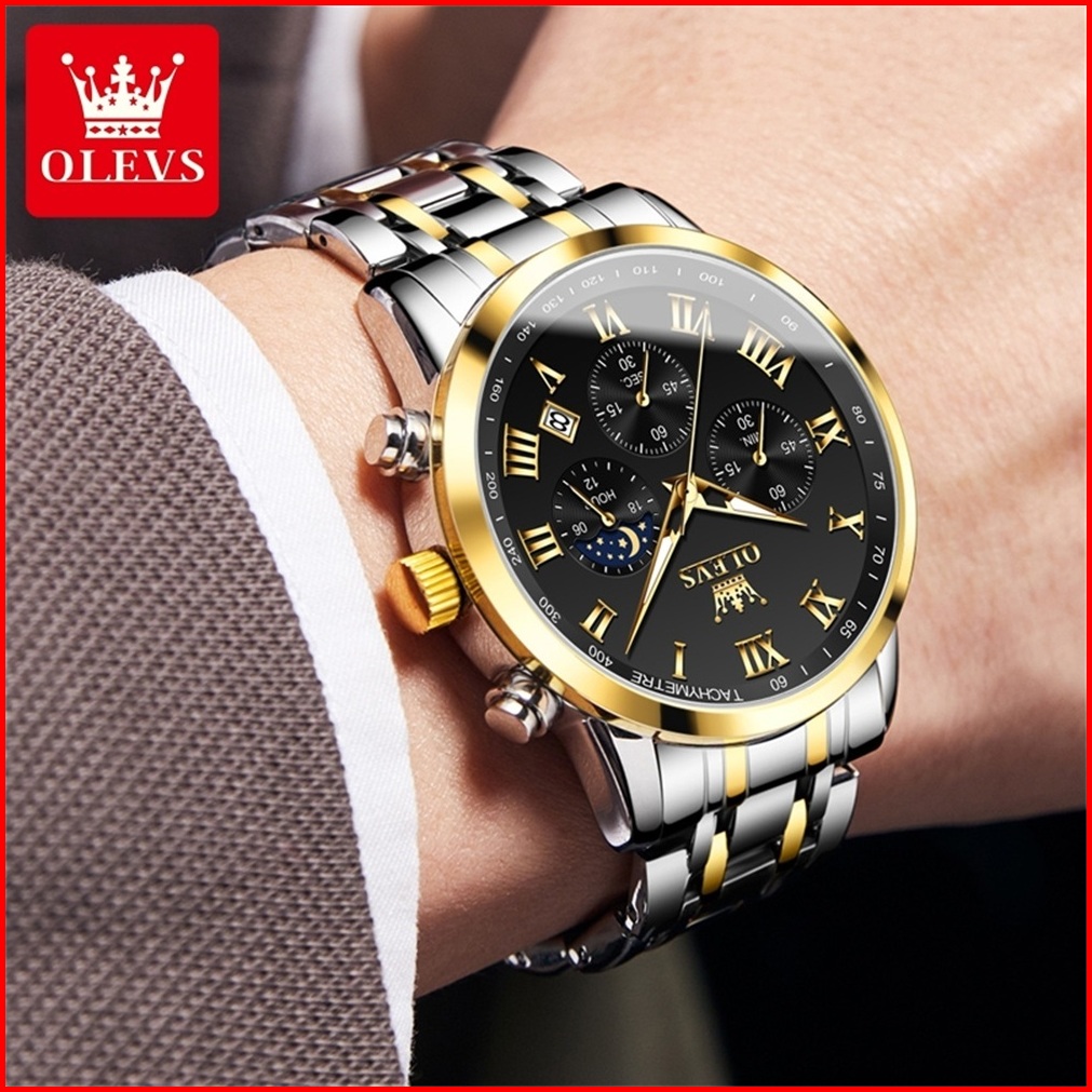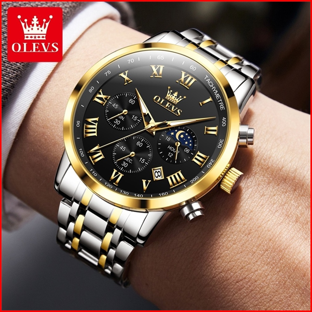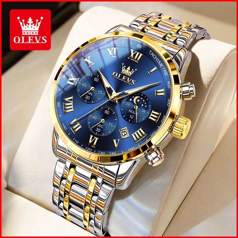 Olevs Jam Tangan Pria Anti Air Original 100 Terbaru Mewah Stainless Steel Bisnis Keren Cowok Multifungsi Quartz Analog W