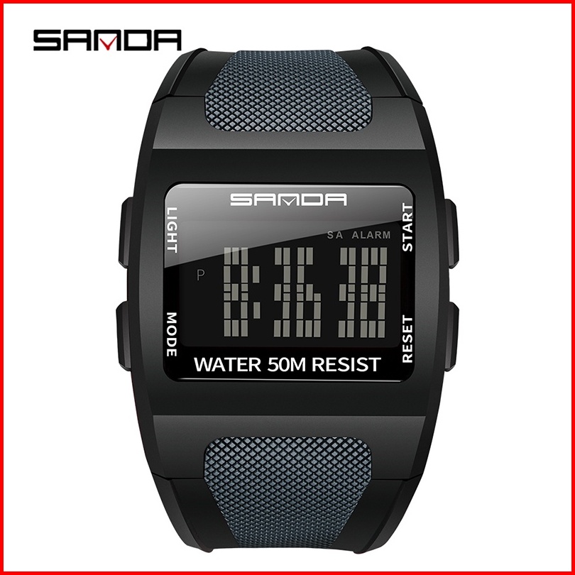 Sanda 222 Jam Tangan Pria Digital Sport El Backlight Tali Rubber Anti Air