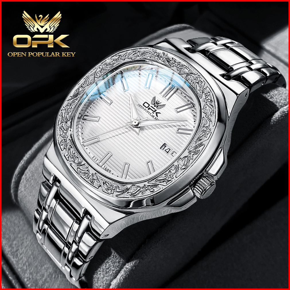 Opk 8145 Jam Tangan Pria Anti Air Mewah Keren Original Cowok Fashion Bisnis Aesthetic Kalender Tahan Arloji Pria Terbaru