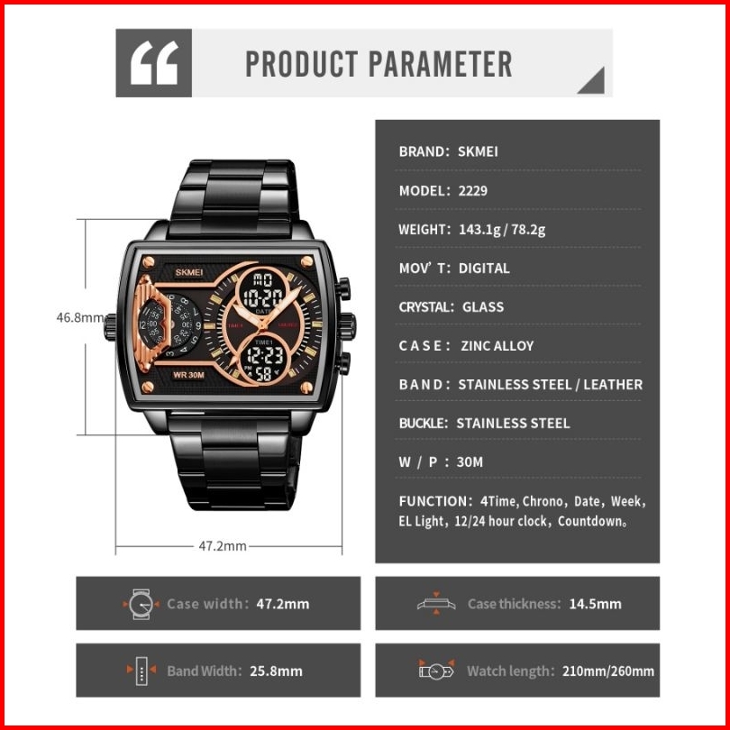 Jam Pria Skmei 2229 Four Time Free Gift Box