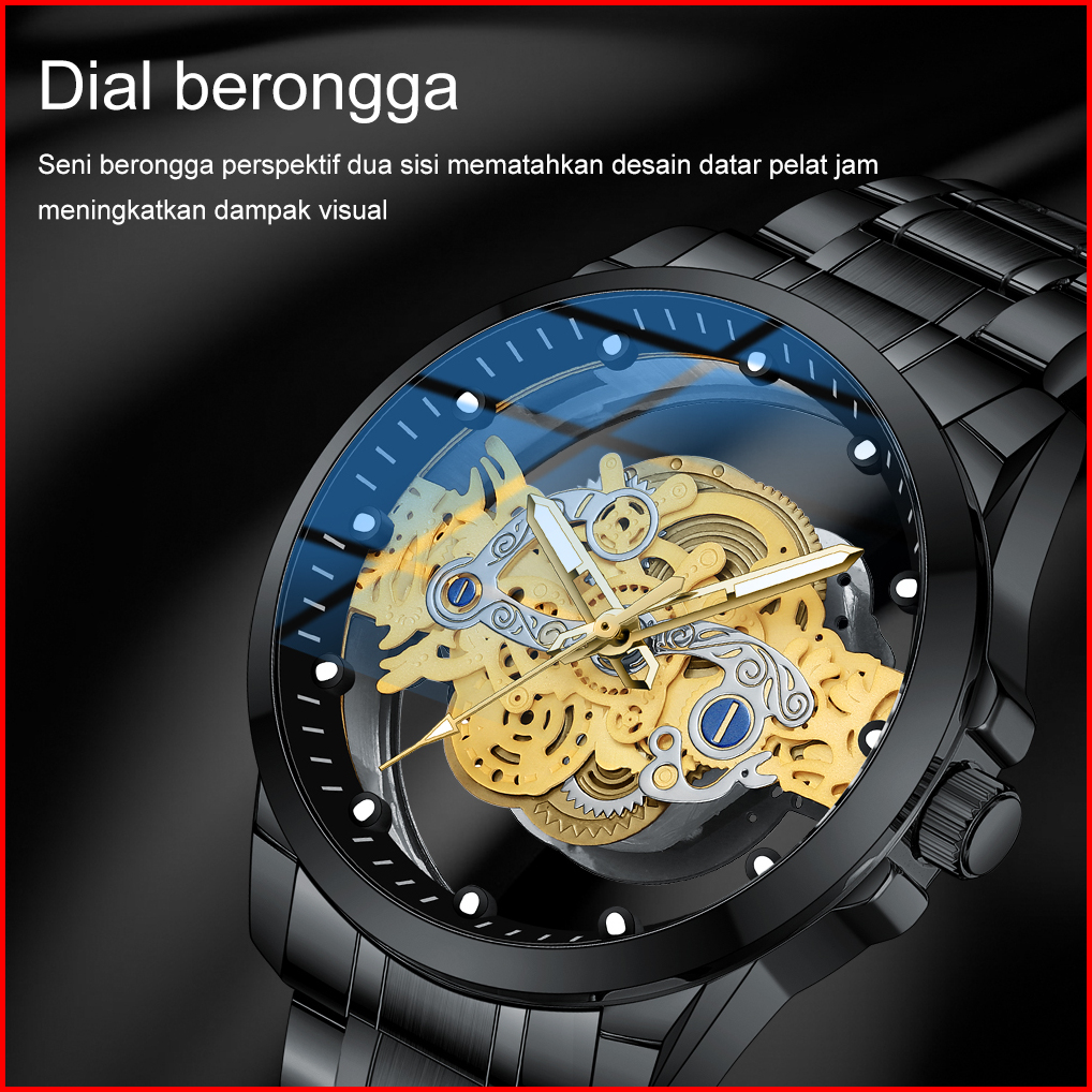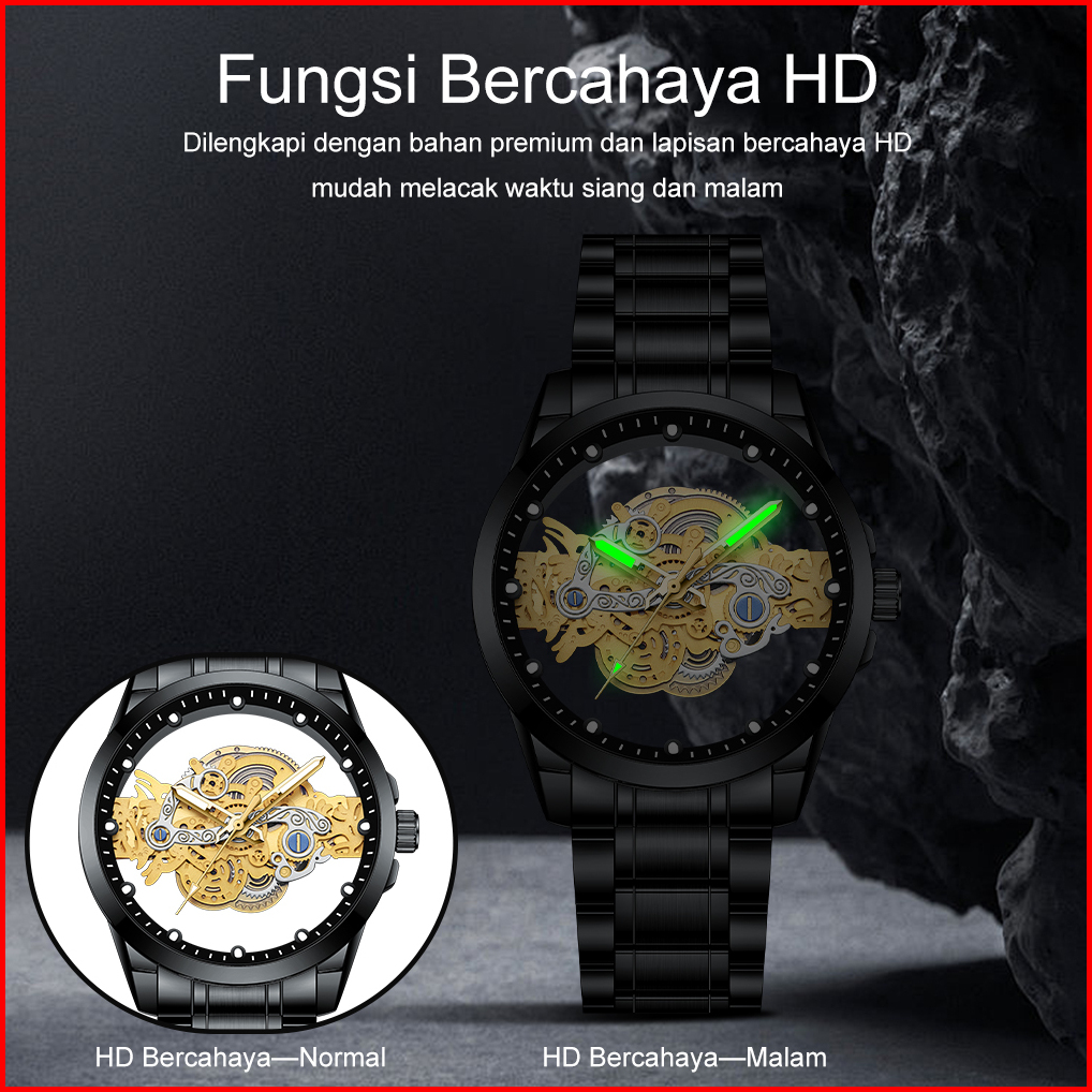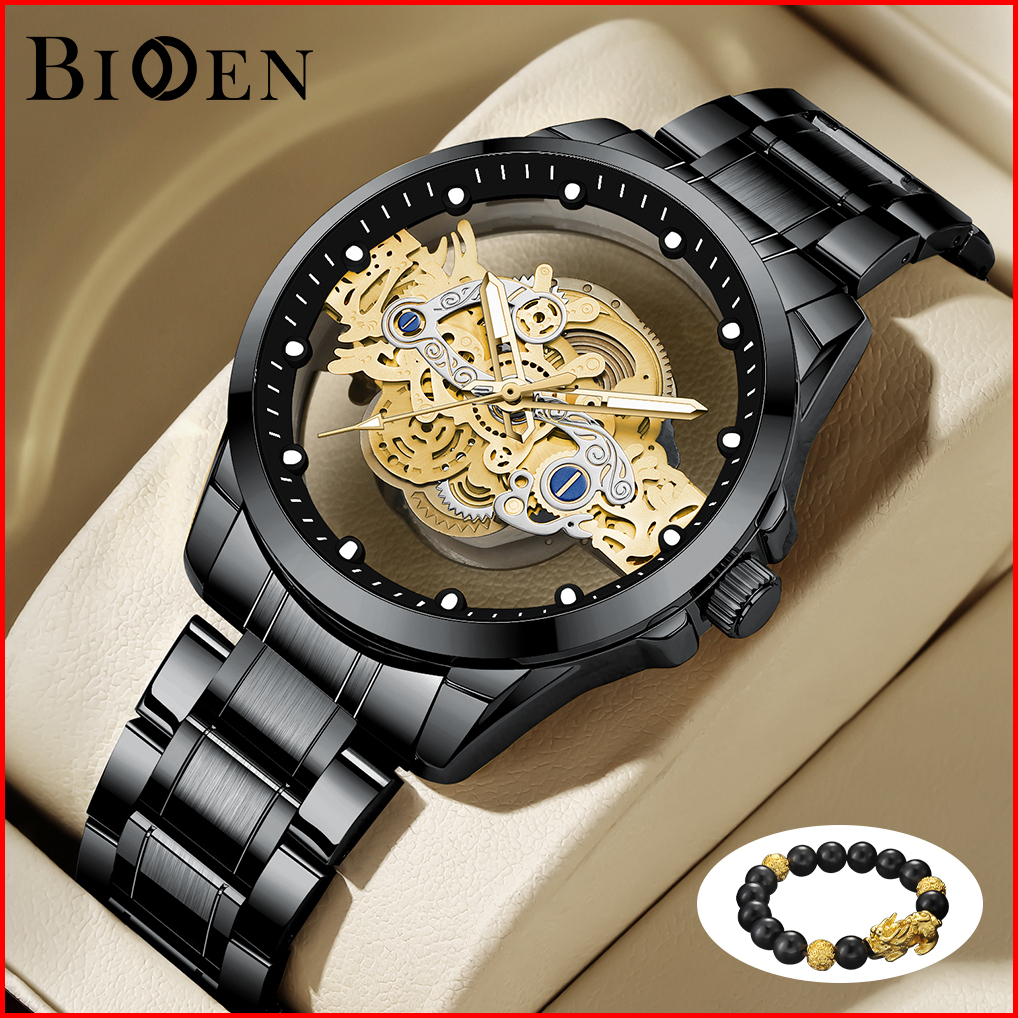Biden Jam Tangan Pria Anti Air Original Kuarsa Transparan Dial Cool Tali Stainless Steel Jam Tangan Cowok