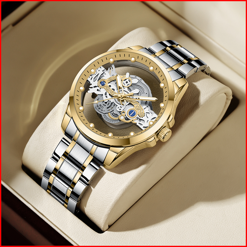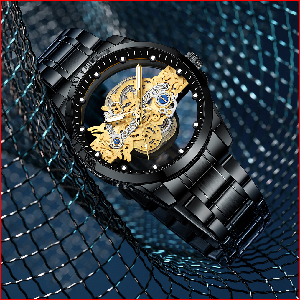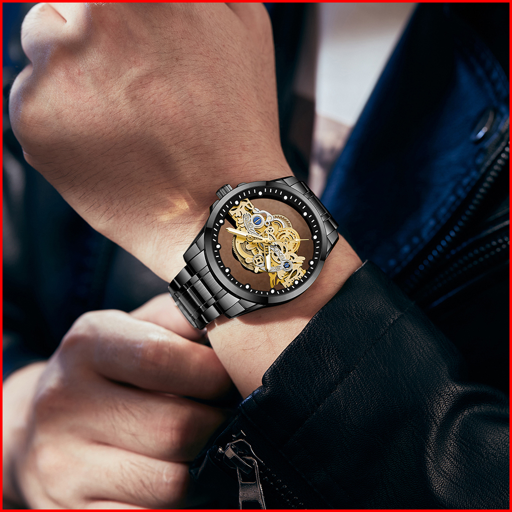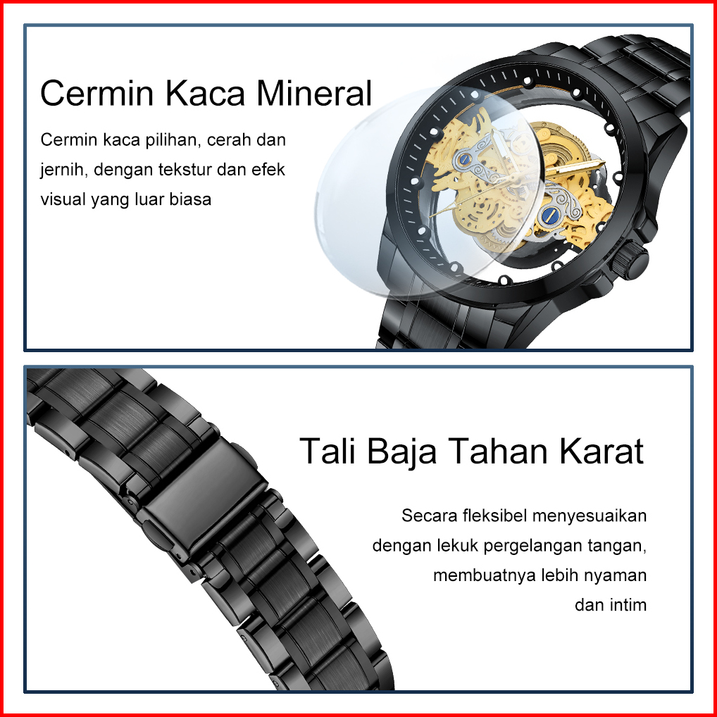 Biden Jam Tangan Pria Anti Air Original Kuarsa Transparan Dial Cool Tali Stainless Steel Jam Tangan Cowok