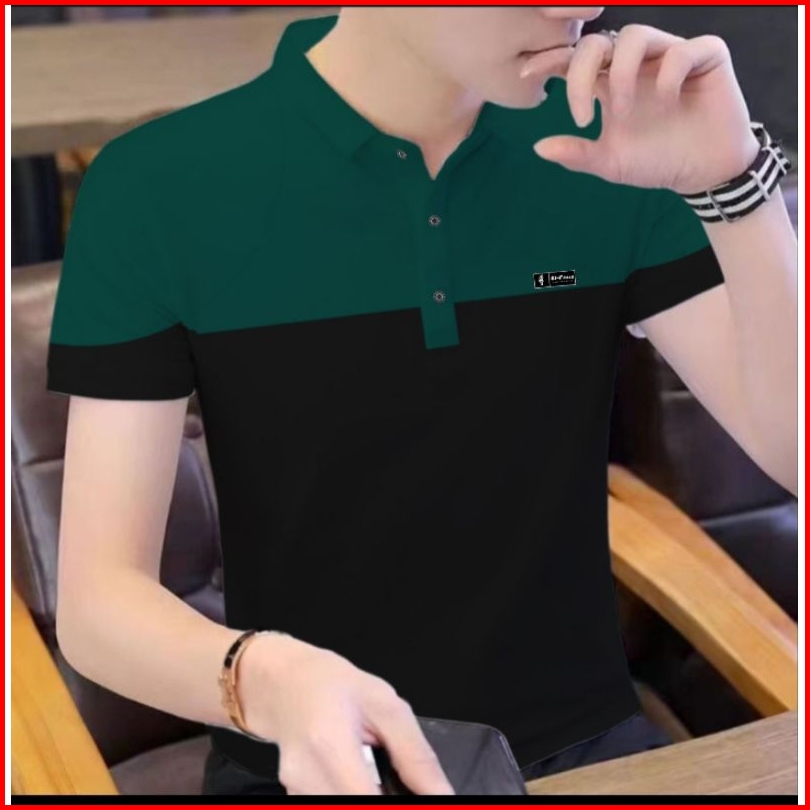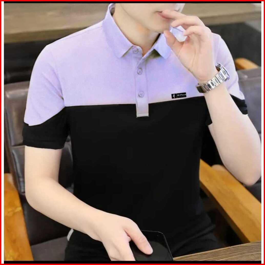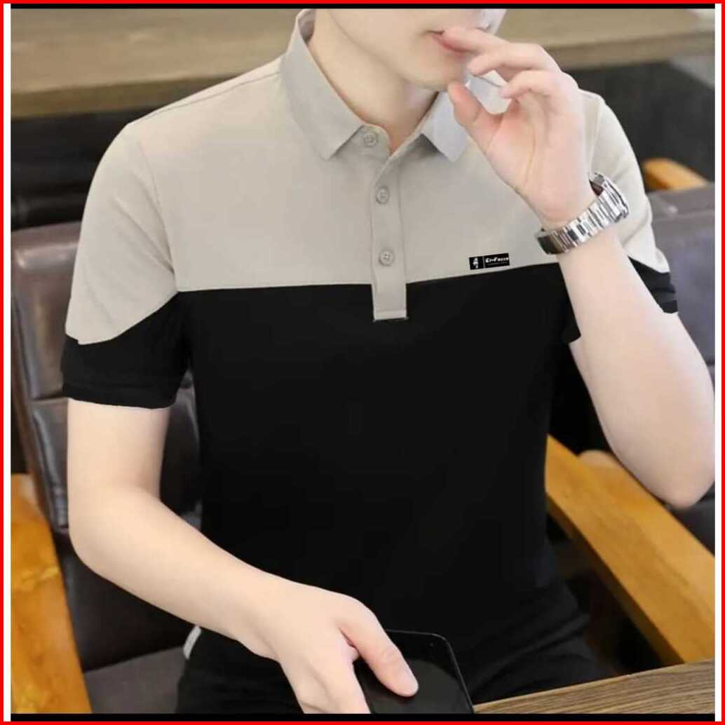 Kaos Polo Pria Tangan Pendek Motif Kombinasi Baju Kerah Model Korea Kekinian El Faza