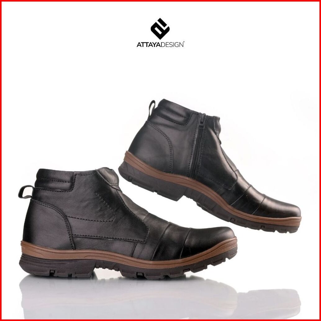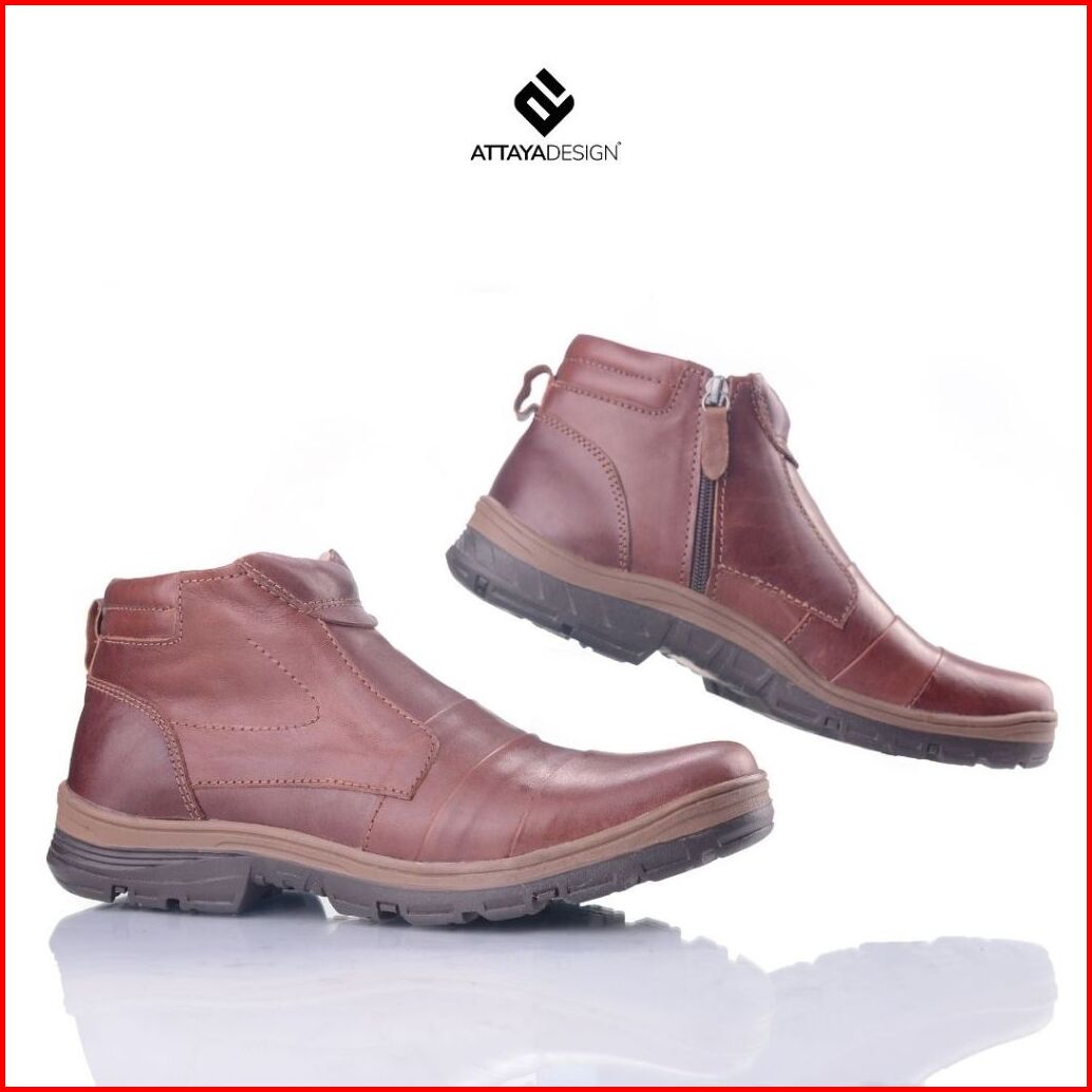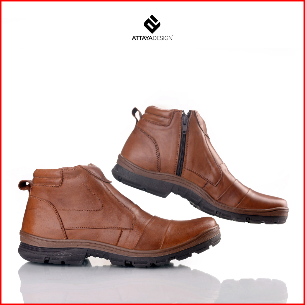 Attaya Design Sepatu Pria Boot Fashion Kulit Asli Original Tanpa Tali Warna Hitam Cokelat Tan 022