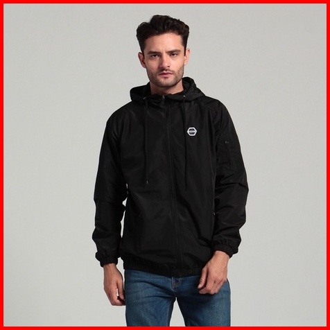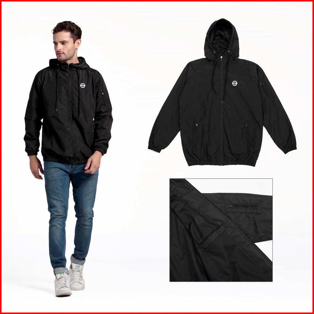 Rckls.ltd Jaket Pria Black Hexagon Jaket Taslan Waterproof
