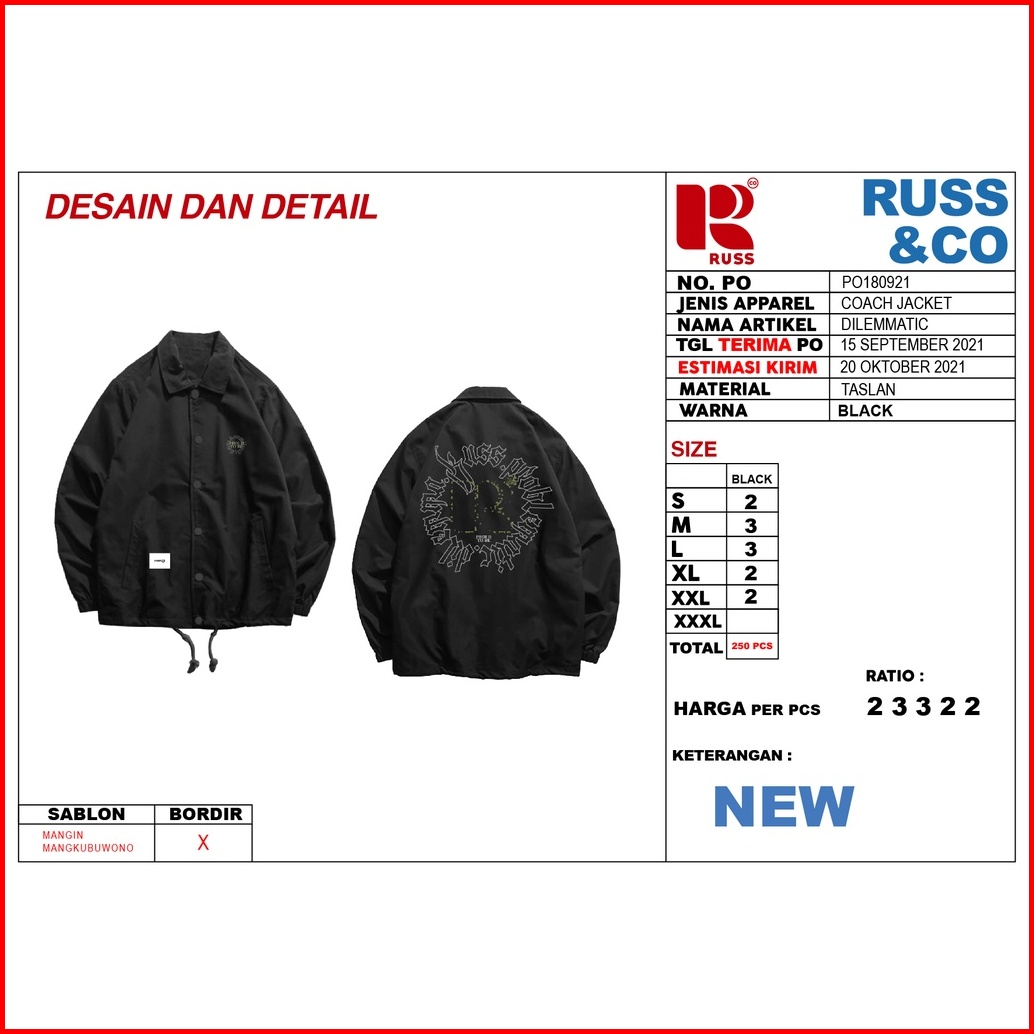 Russ Jacket Coach Pria Dilemmatic Black Up To Big Size