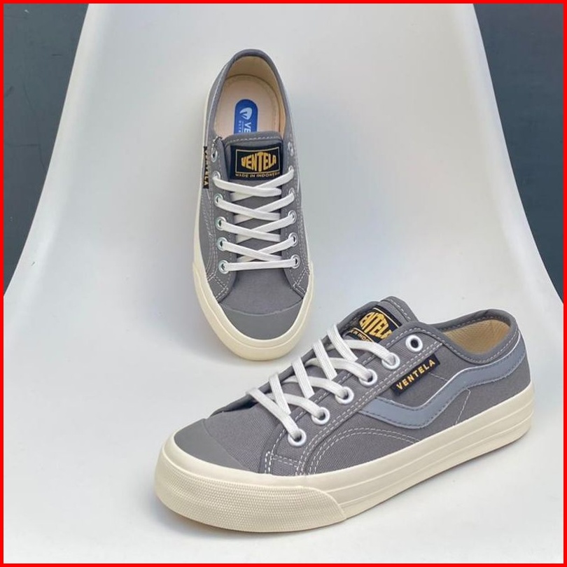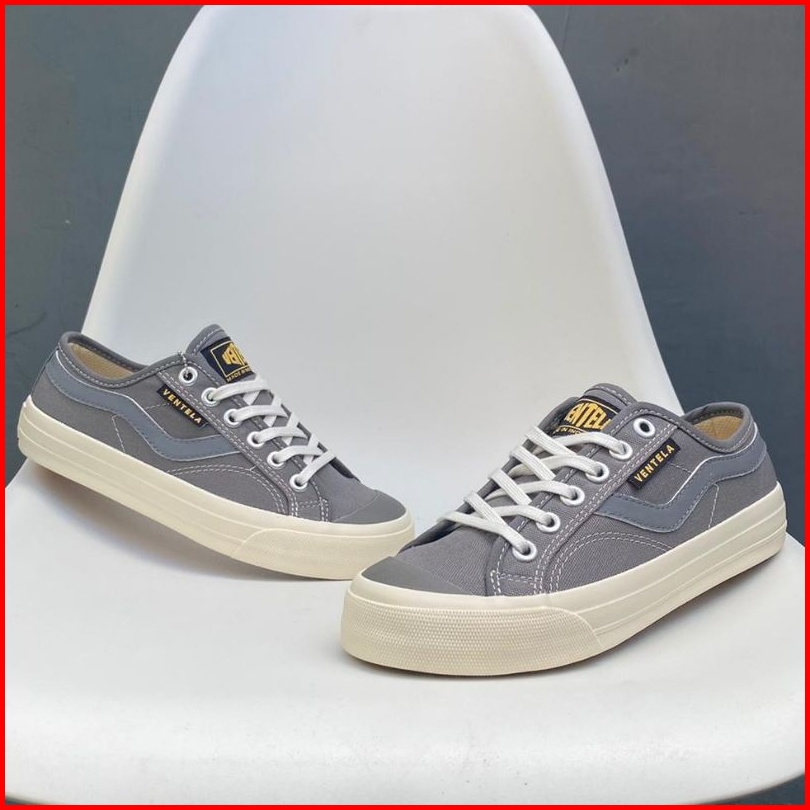 Sepatu Ventela New Public Grey Low 100 Original - Sepatu Vantela Pria - Abu Abu - Bisa Nyala - Ventella - Pria Wanita -