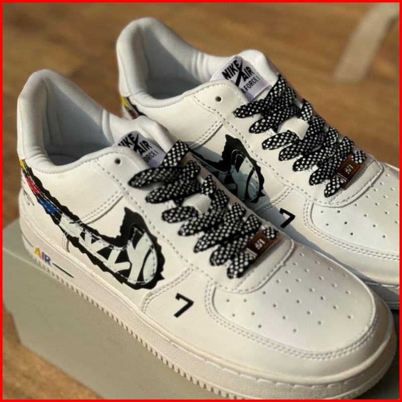 Sepatu Unisex A1r Forc3 Nets Brooklyn Sneakers Putih Kasual Sepatu Pria Dan Wanita White