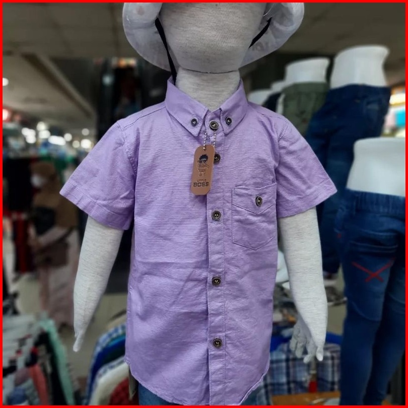 Kemeja Anak Warna Lilac Lengan Pendek Bahan Premium