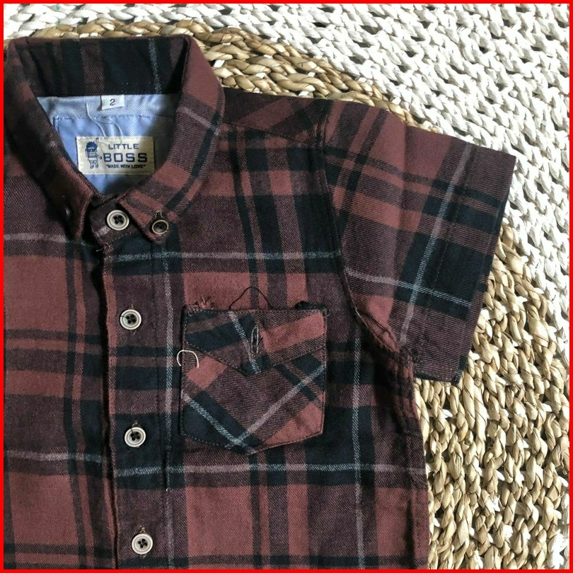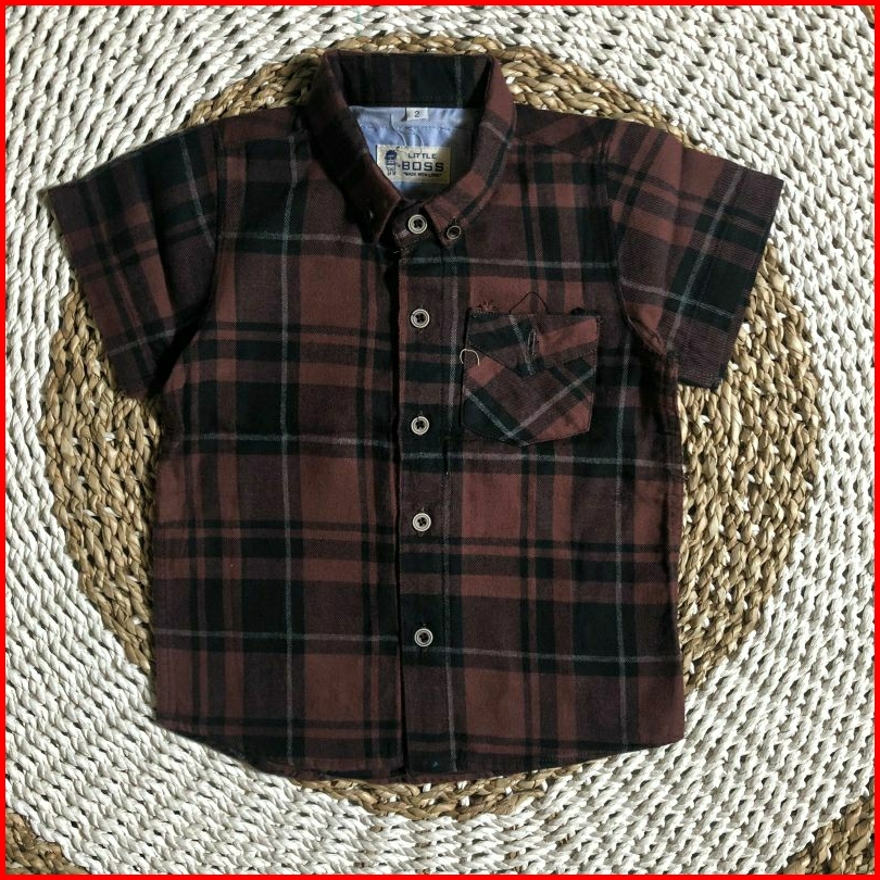 Kemeja Pendek Anak Lengan Pendek Bahan Katun Flanel Premium Warna Mewah Little Boss