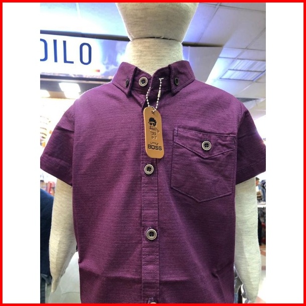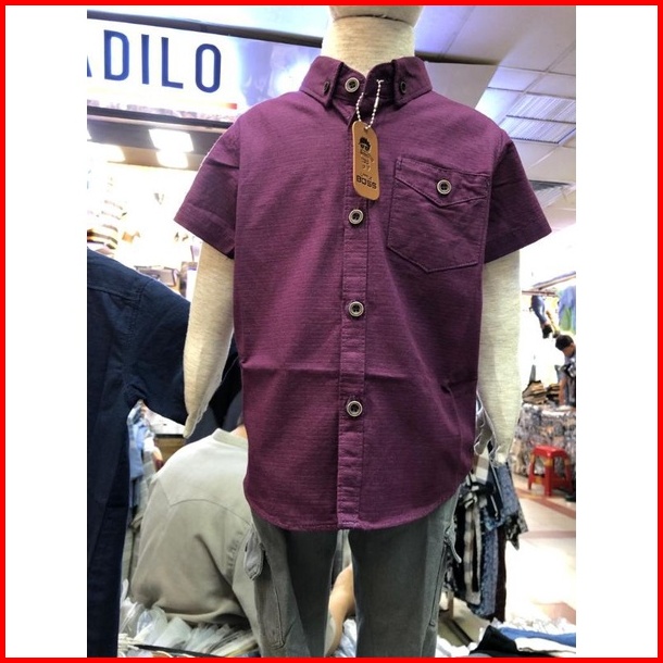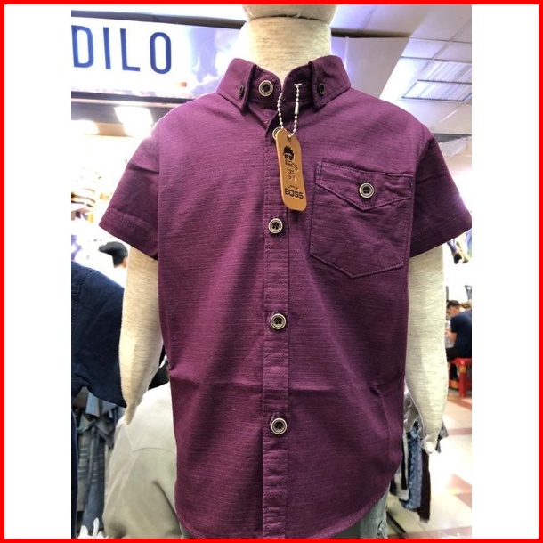 Kemeja Anak Lengan Pendek Laki-laki Warna Ungu Burgundy Bahan Katun Cigarett Premium Usia 1-16 Tahun