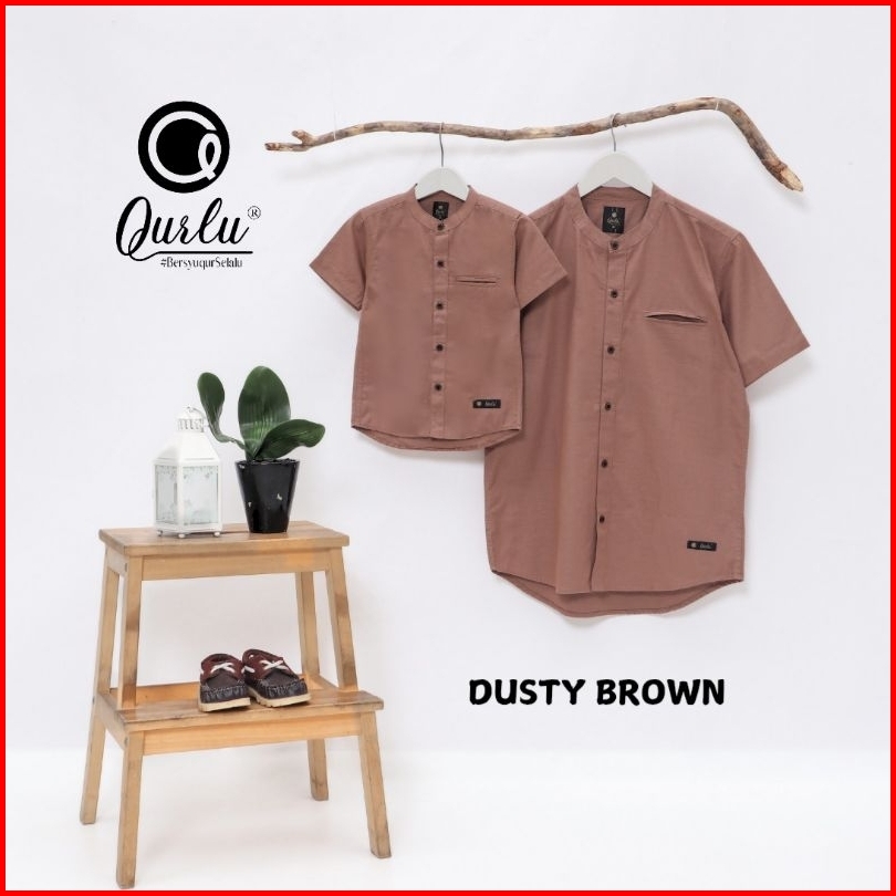 Qurlu - Kemeja Koko Dewasa Anak Warna Dusty Brown Baju Couple Ayah Dan Anak Laki-laki Baju Koko Pria