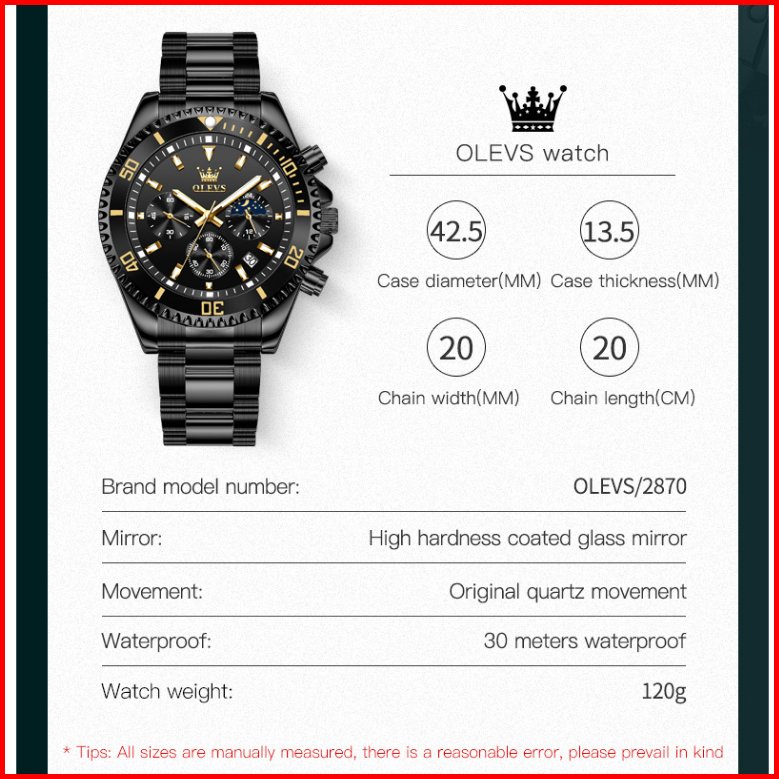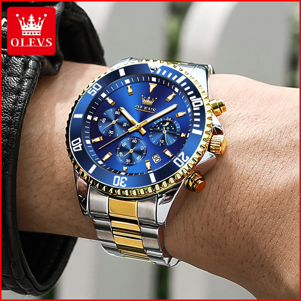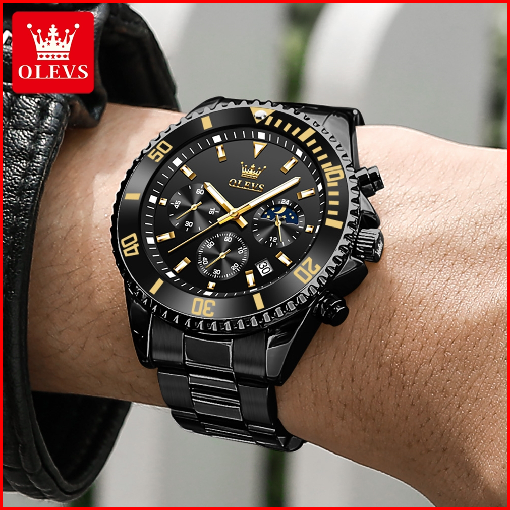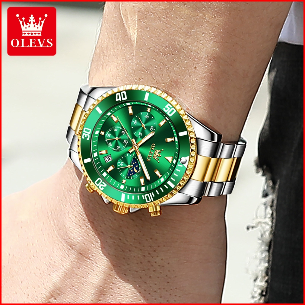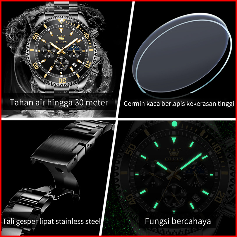 Olevs Jam Tangan Pria Anti Air Original Stainless Steel Bercahaya Kalender Multifungsi Watch 2870