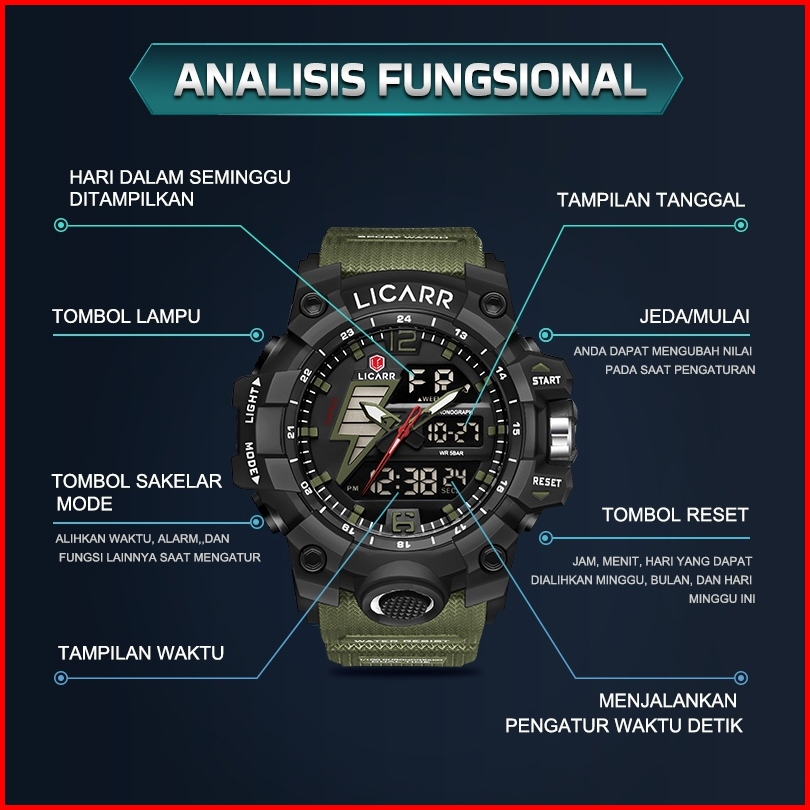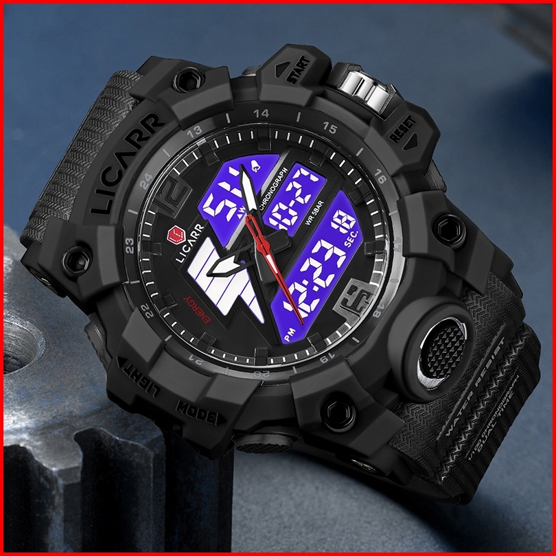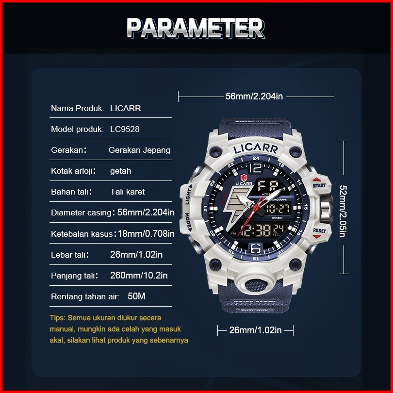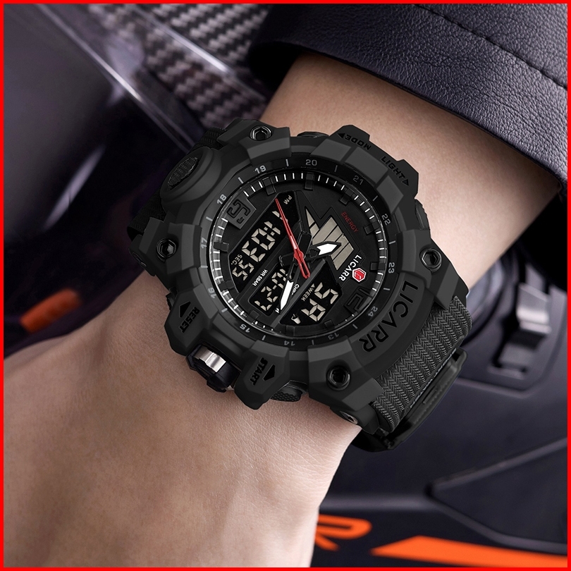 Licarr Jam Tangan Pria Olahraga Analog Digital Santai Anti Air Kuarsa Multifungsi Jam Tangan Cowok Original Merek 9528