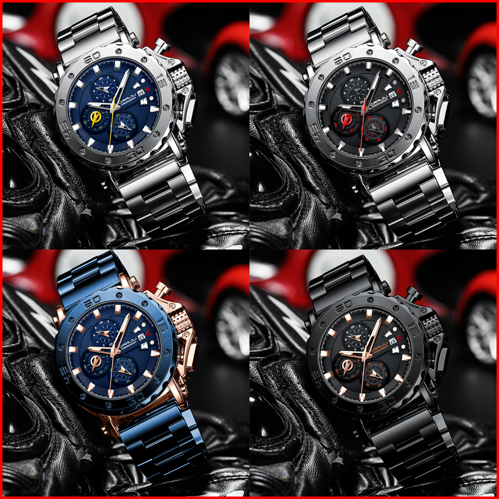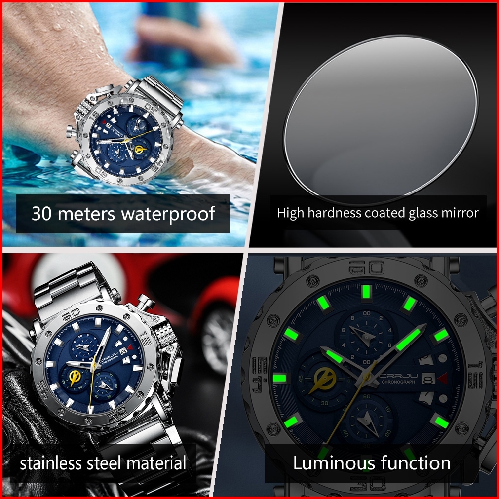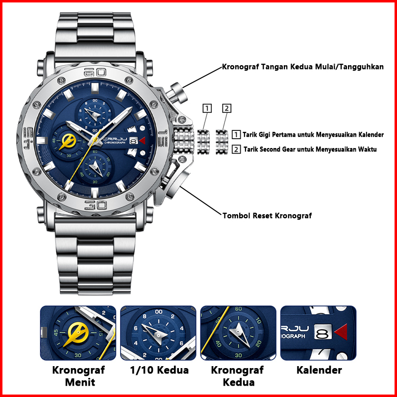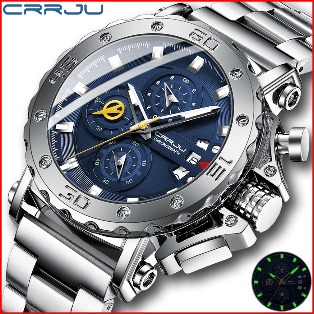 Crrju Jam Tangan Pria Militer Multifungsi Kasual Cowok Olahraga Chronograph Tahan Air Bercahaya Kuarsa