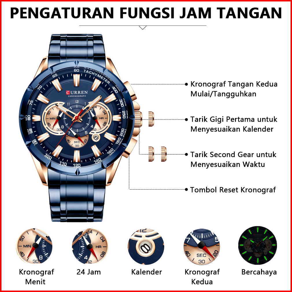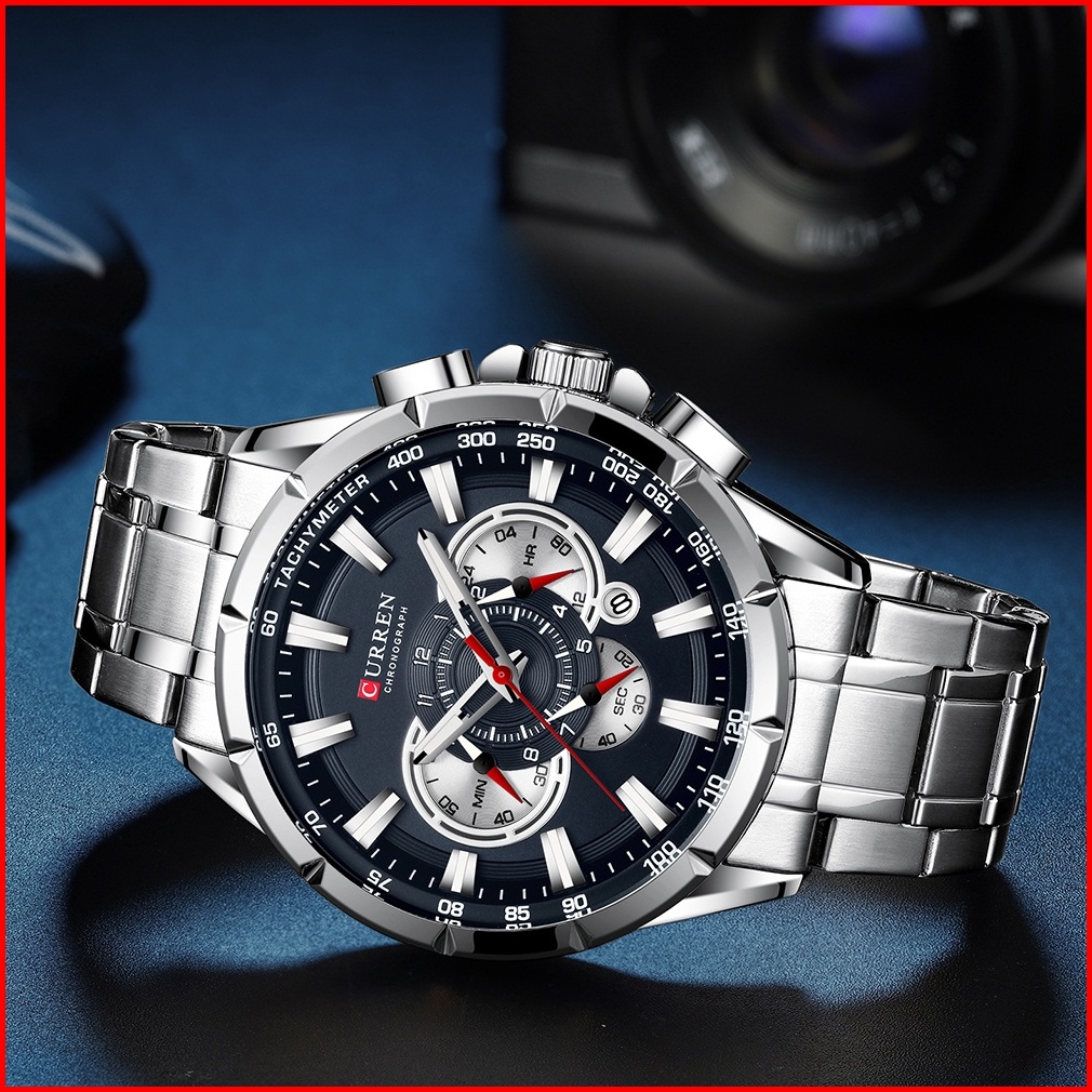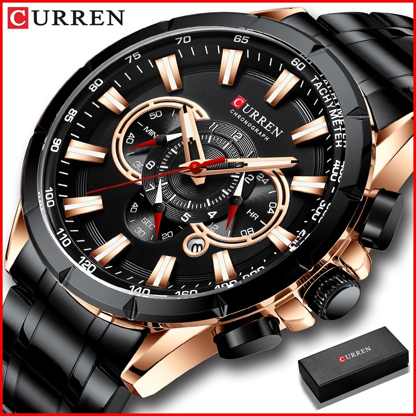 Curren Jam Tangan Pria Mewah Teratas Merek Kuarsa Fashion Baja Penuh Olahraga Tahan Air Pria Jam Tangan Pria Kasual Tang