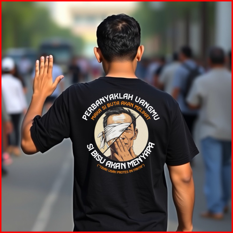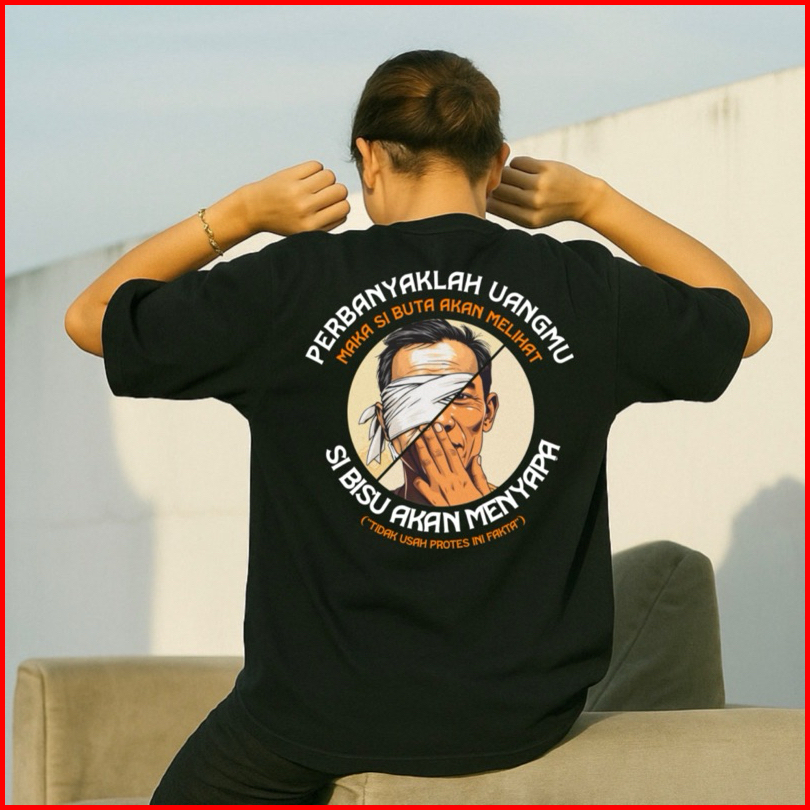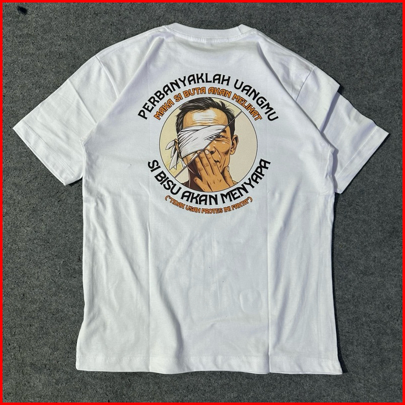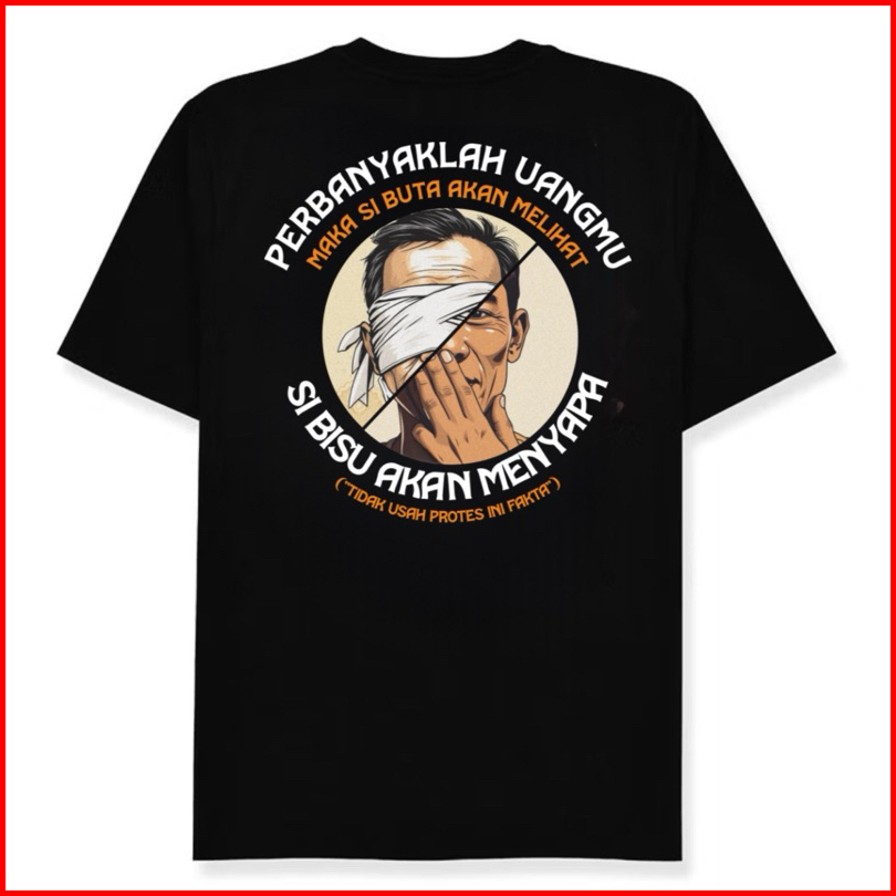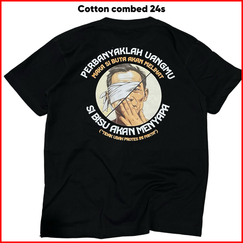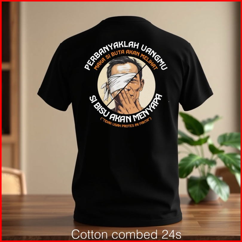 Kaos Perbanyaklah Uangmu Maka Si Buta Akan Melihat Si Bisu Akan Menyapa Unisex Cotton Combed 24s