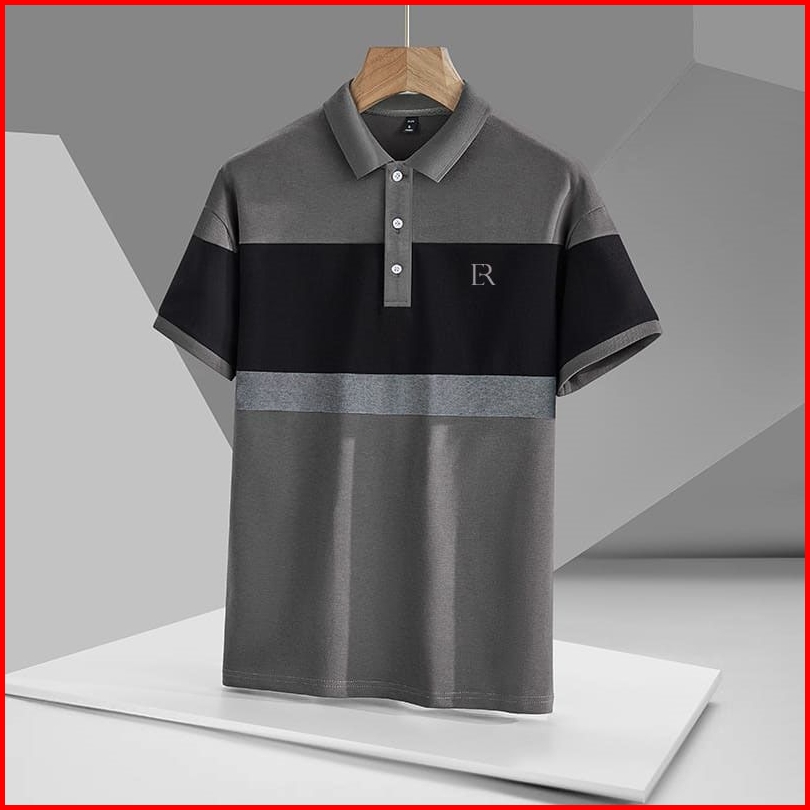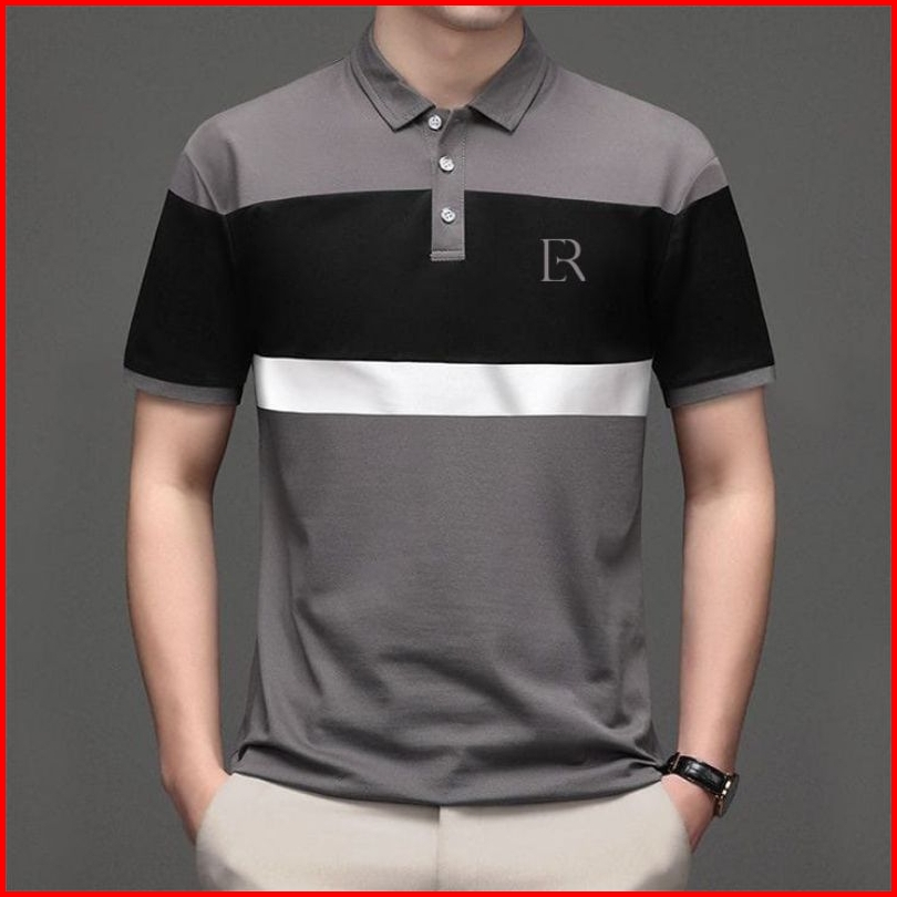 Erwain Ll Gray Kaos Polo Shirt Kombinasi Pria Cotton Combed Bisnis Kasual Distro Bandung