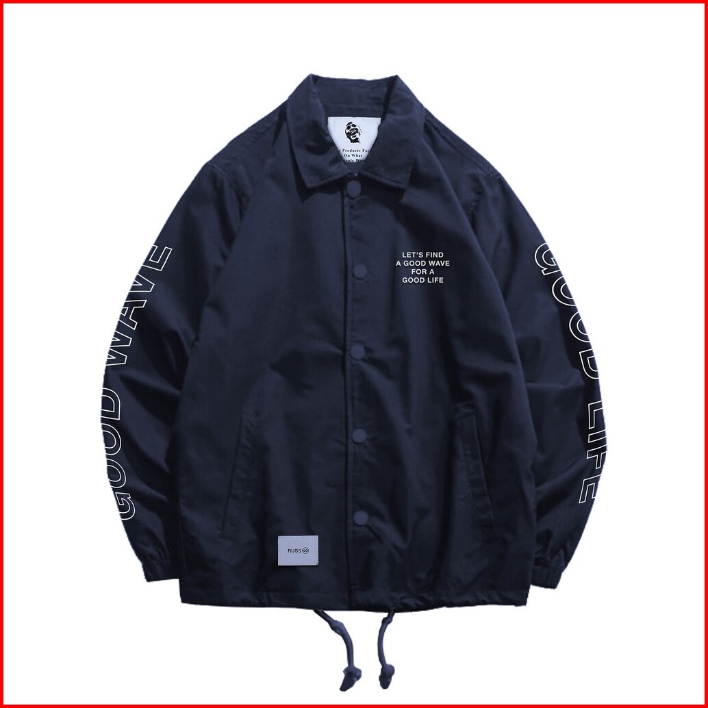 Russ Jacket Coach Pria Waves Navy Blue Up To Big Size