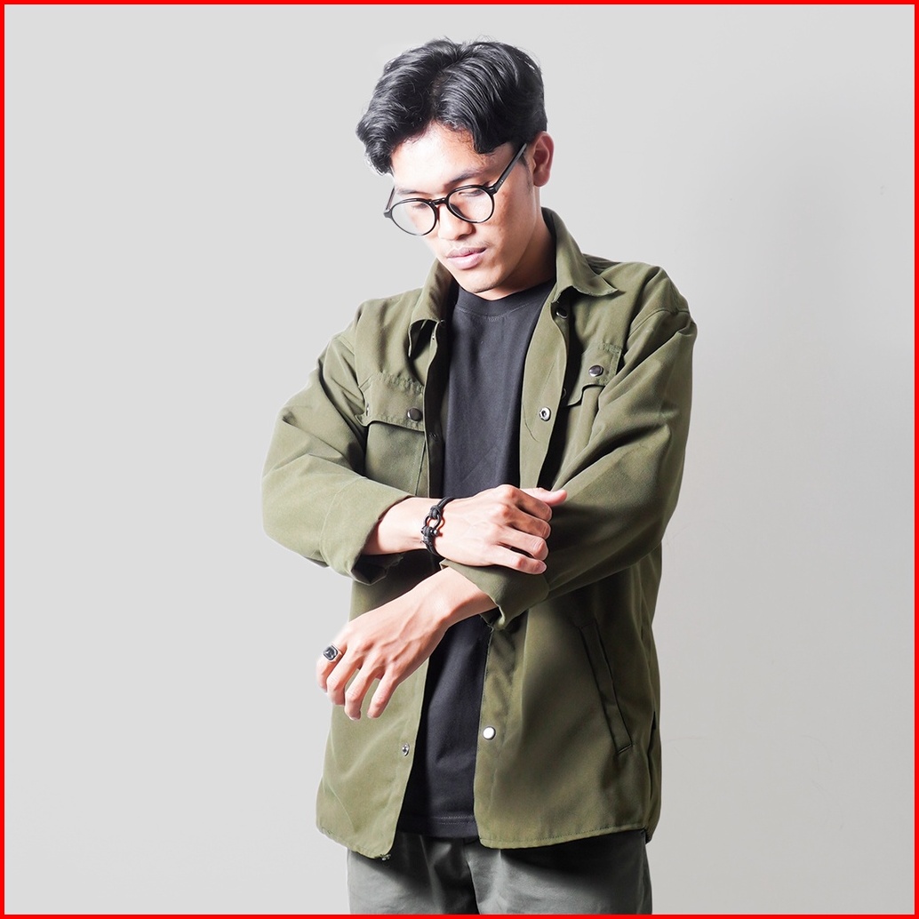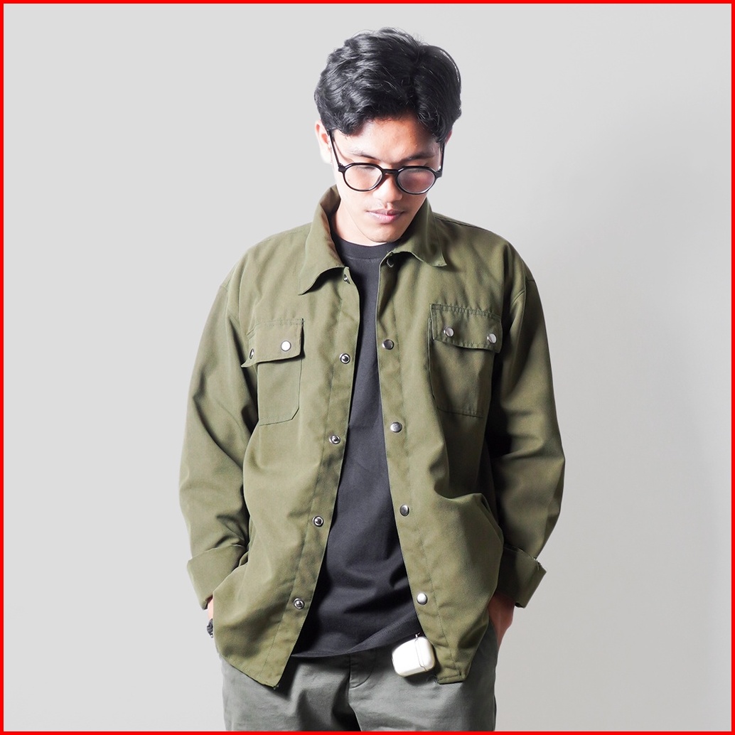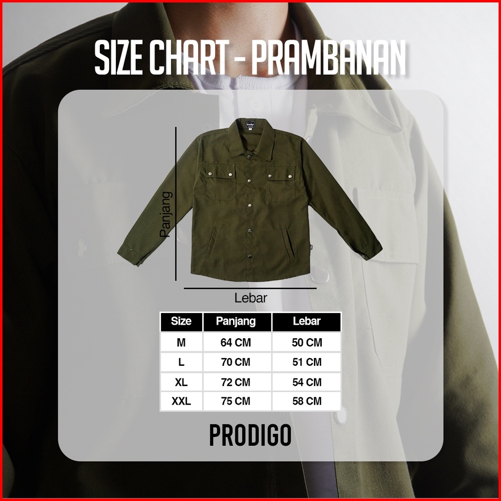 Prodigo Prambanan Army Kemeja Lengan Panjang Kemeja Pria Kemeja Modern Trucker Jacket Kemeja Casual