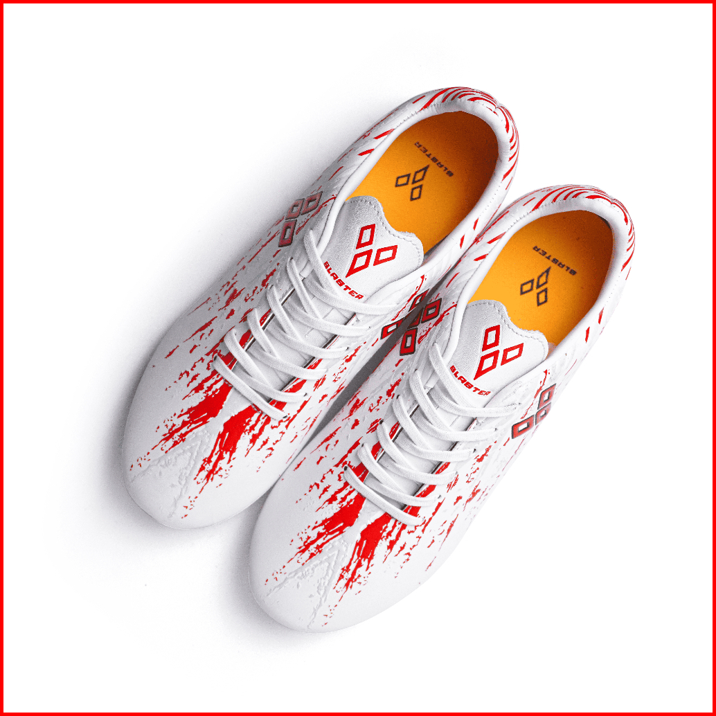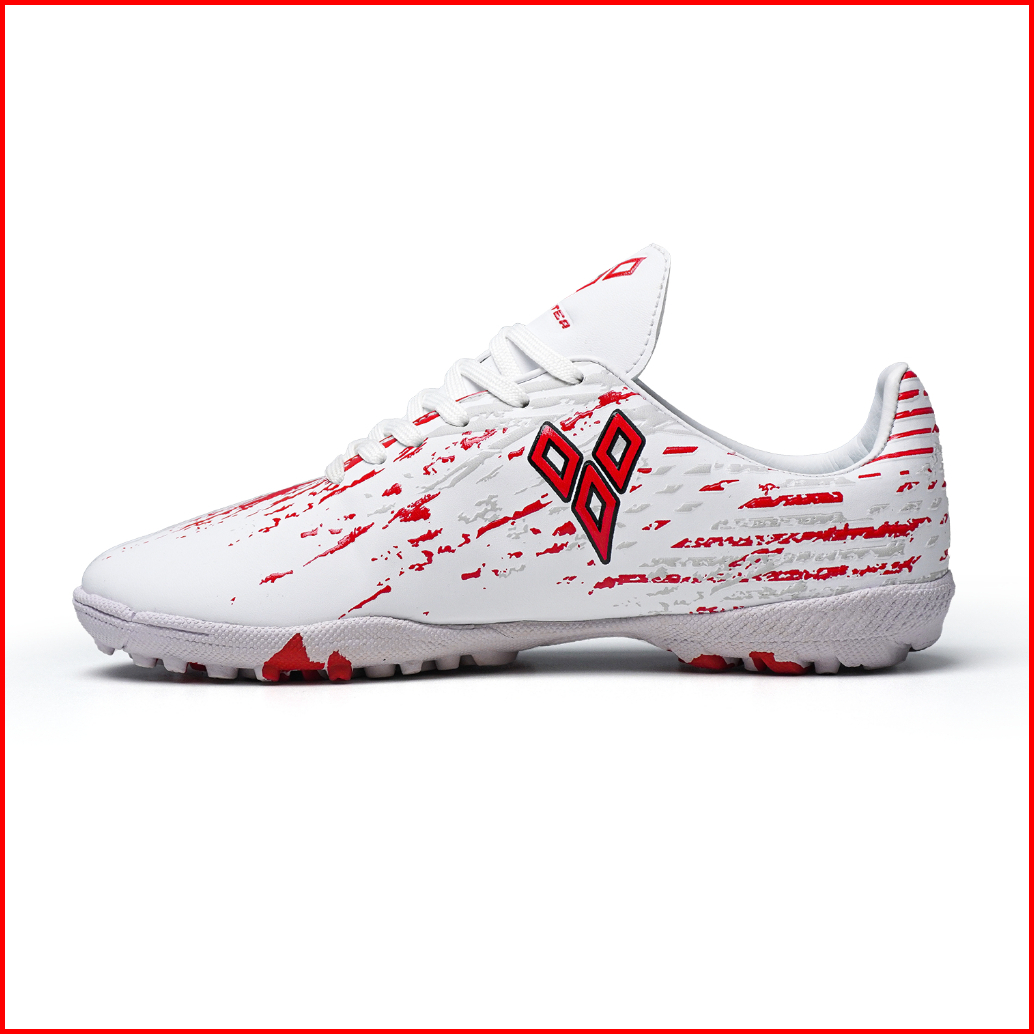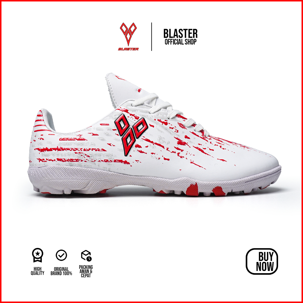Blaster - Stride Putih Merah Sepatu Futsal Anak Dewasa Mini Soccer Sol Turf Gerigi Olahraga Outdoor